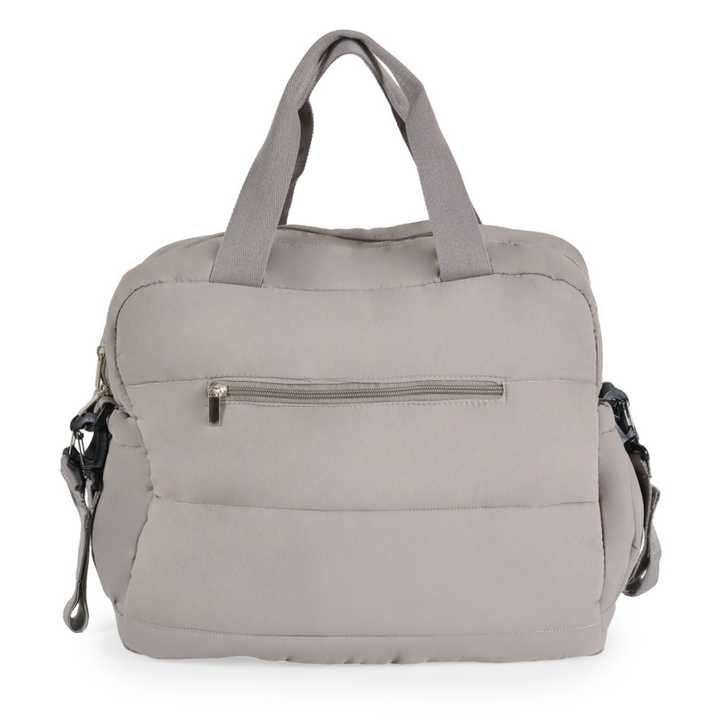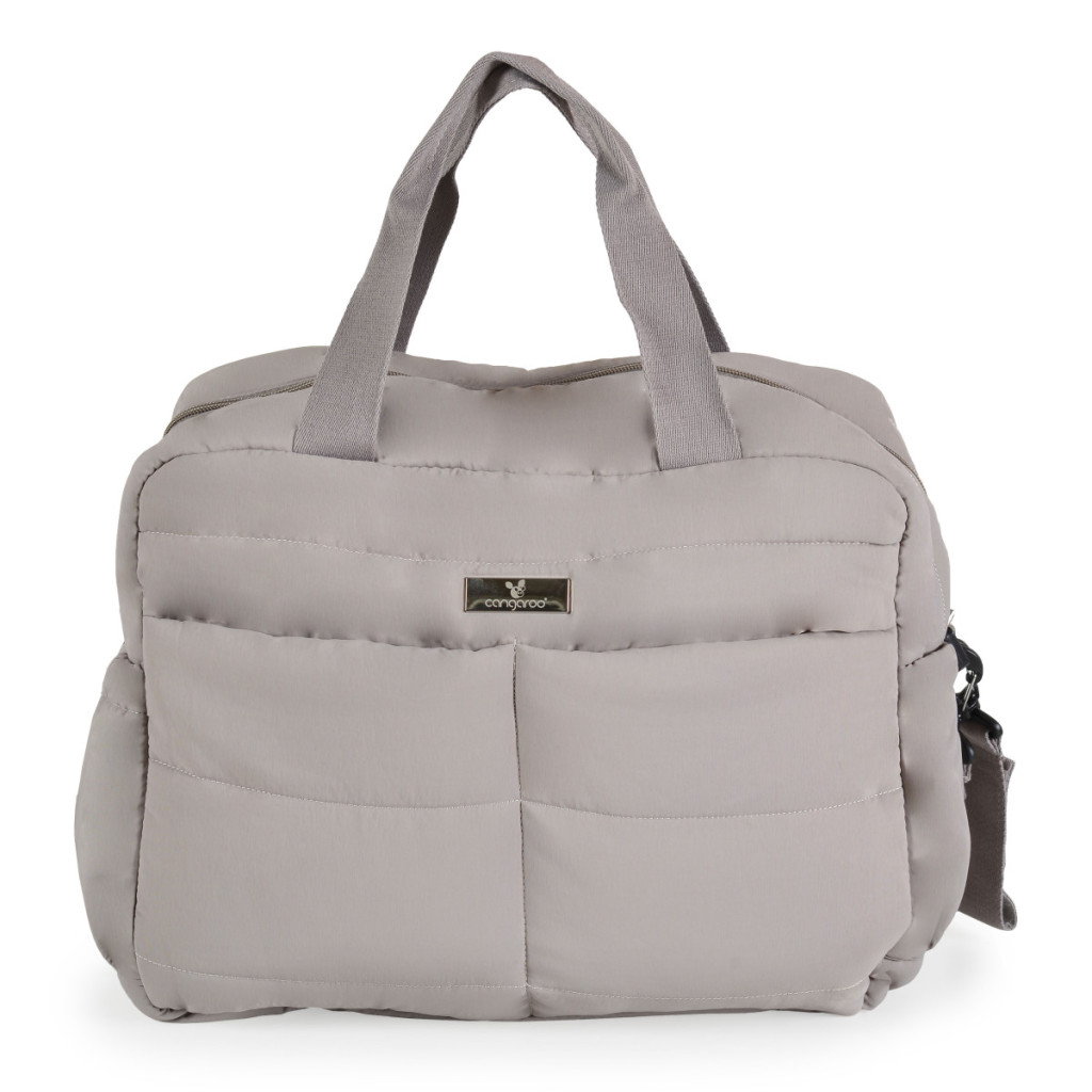 A táska szürke színű, így egyszerűen illeszkedik bármilyen babakocsihoz.