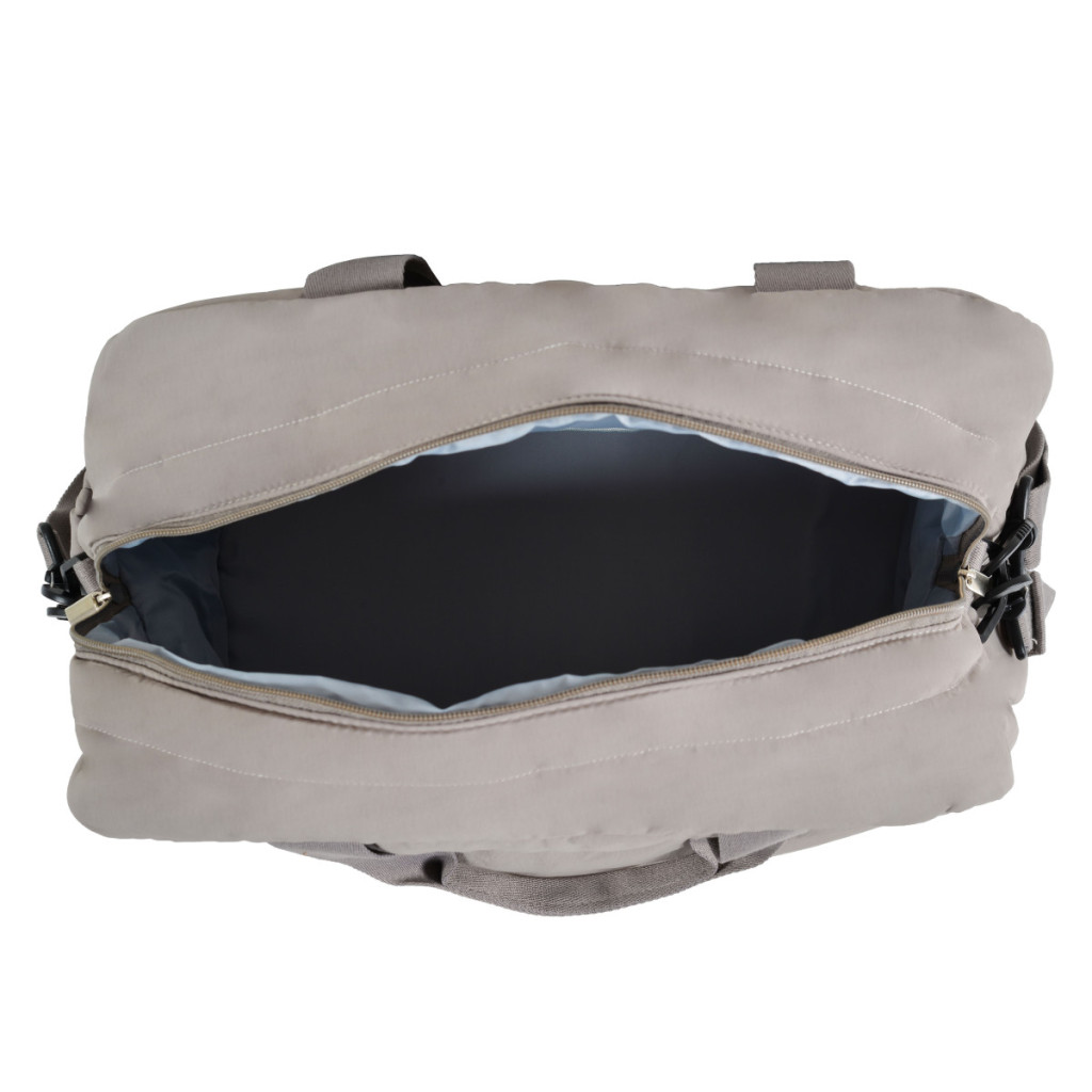 A táska továbbá tartalmaz egy pelenkázó alátétet is, ami különösen hasznos lehet, ha épp úton vagy, és nincs másik pelenkázási lehetőség.