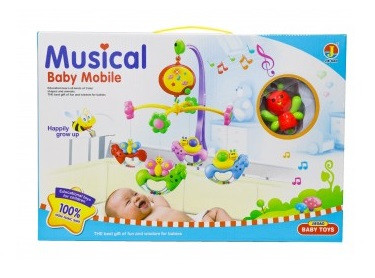 A kisgyermek szórakoztatására szolgáló műanyag forgó zenélő játék.