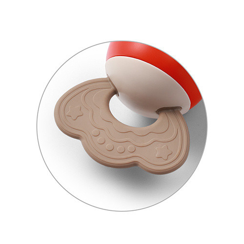 A kellemes tapintású szilikon rágóka gyengéden masszírozza a baba ínyét, és lehetővé teszi a fogzás közbeni fájdalom enyhítését.