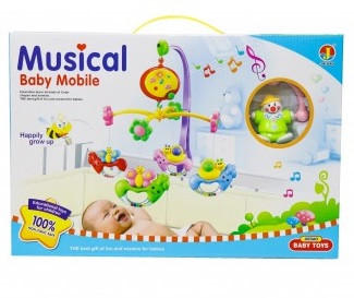 A kisgyermek szórakoztatására szolgáló műanyag forgó zenélő játék.