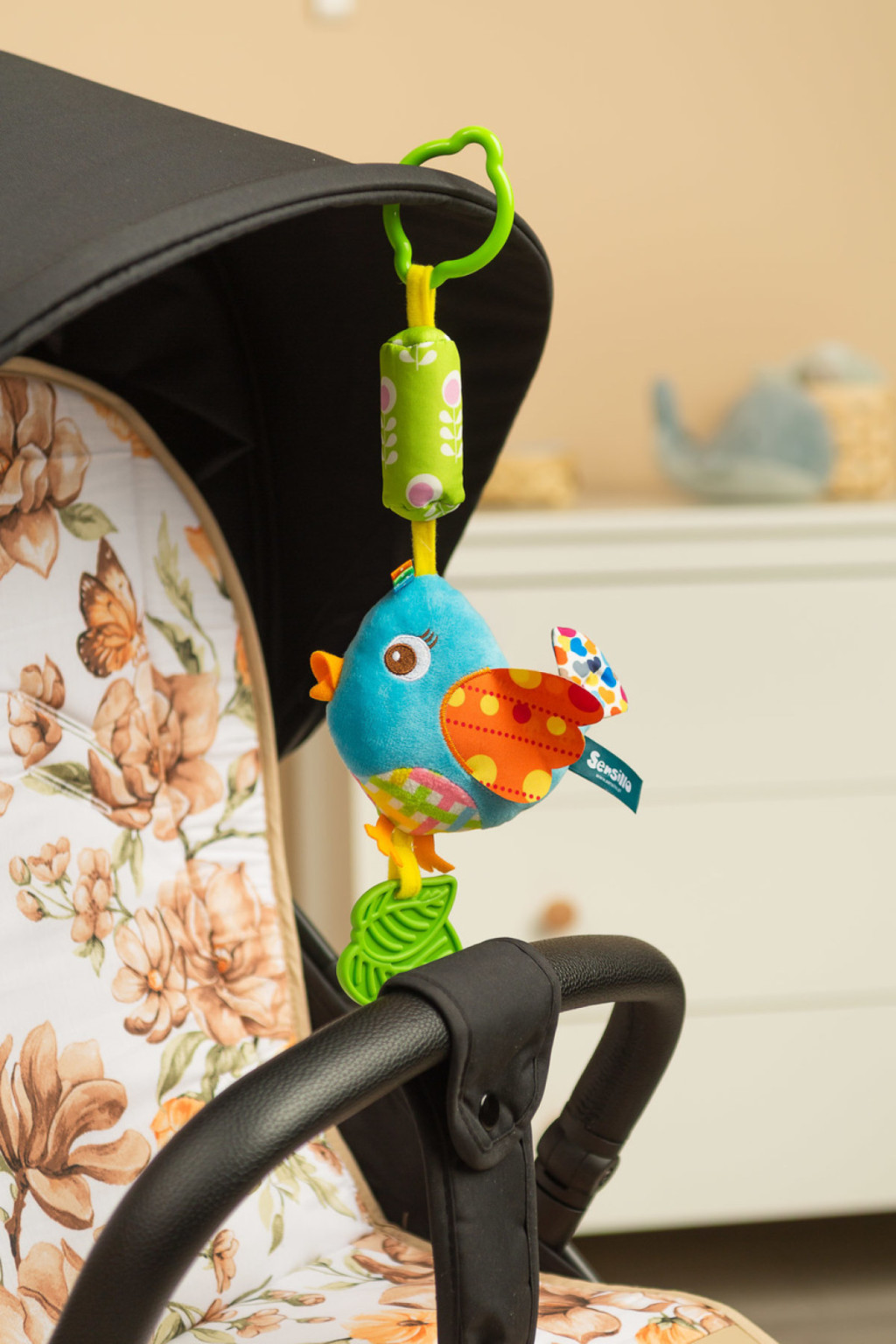 Tündéri megjelenésű, puha, babytex anyagból készült plüss maci figura babakocsicsörgő funkcióval, ami garantáltan kisbabád kedvence lesz. Bababarát anyagának köszönhetően már újszülött kortól használható.