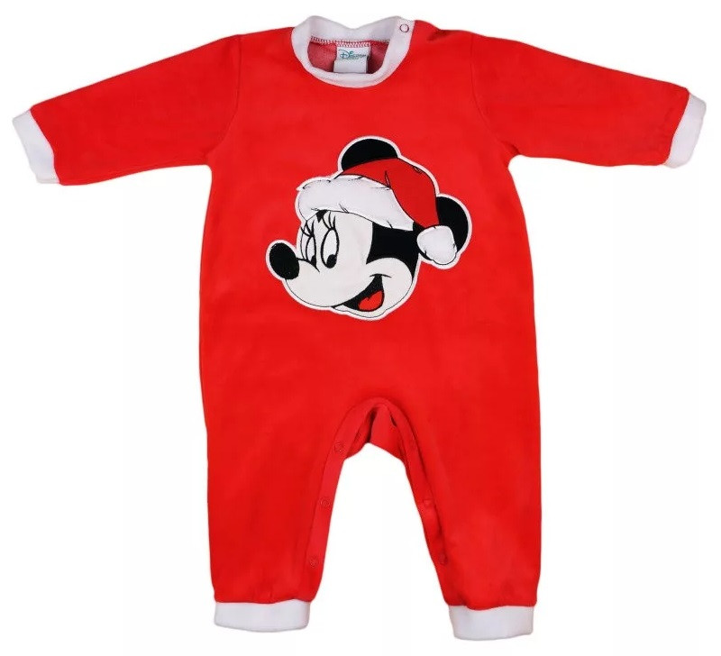 Minnie Mikulás mintával hímzett, vállon patentos, hosszú ujjú plüss rugdalózó