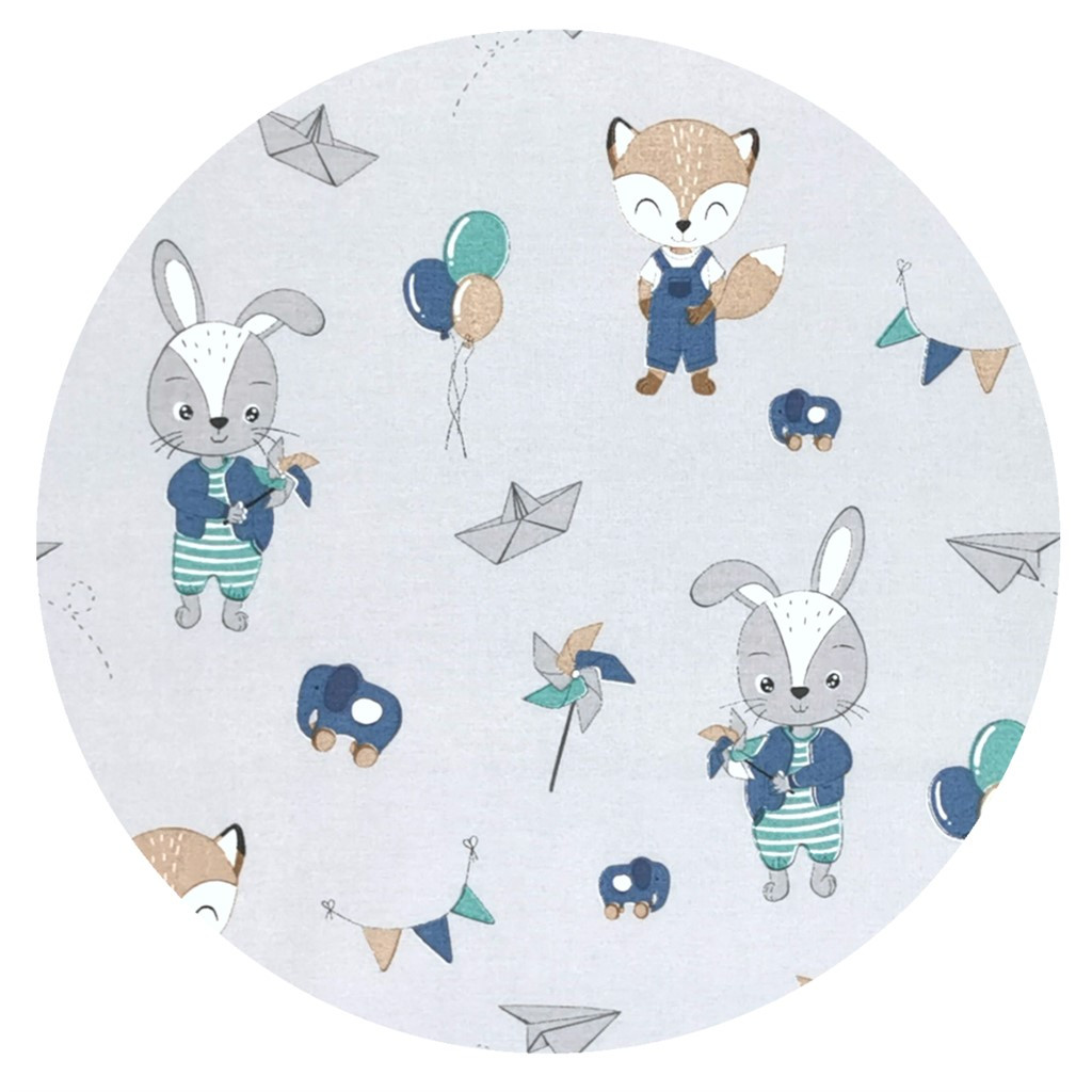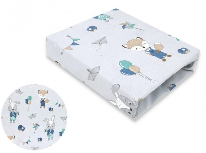 Baby Shop pamut,gumis lepedő 80*160 cm - kék róka és nyuszi