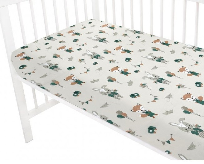 Baby Shop pamut,gumis lepedő 80*160 cm - bézs róka és nyuszi