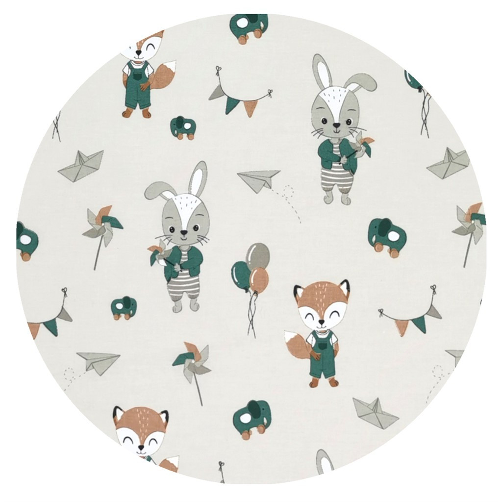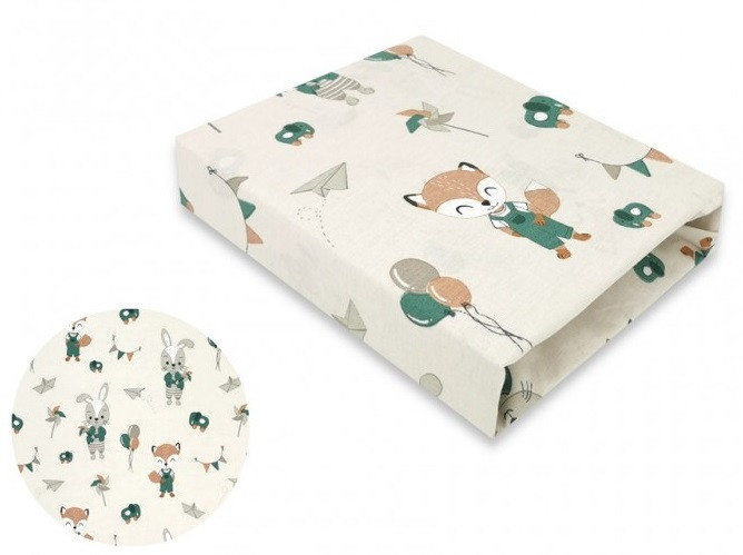 Baby Shop pamut,gumis lepedő 80*160 cm  - bézs róka és nyuszi