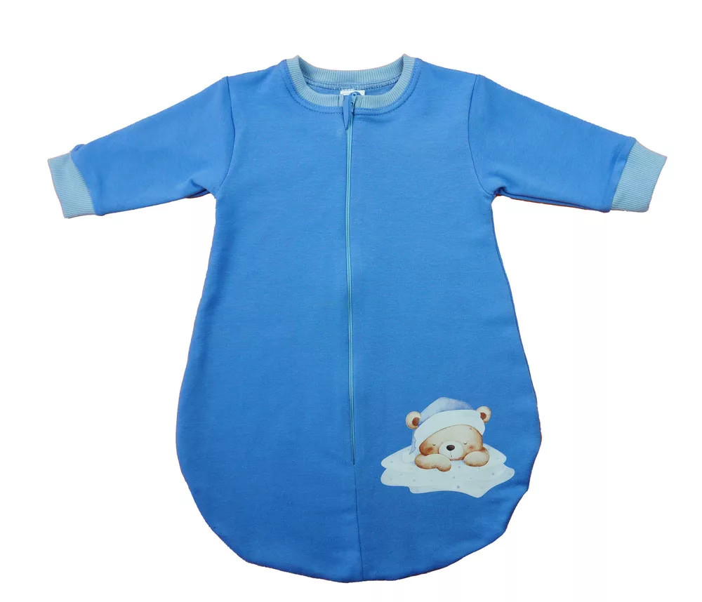 Belül bolyhos hosszú ujjú hálózsák  2,5 TOG - Macis mintával (86) - kék