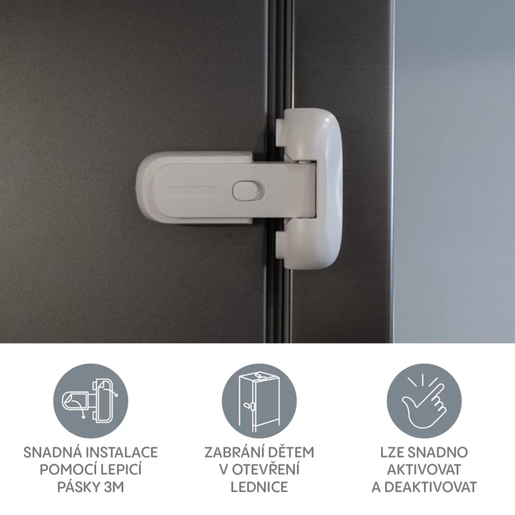 A finomságokkal teli hűtőszekrényajtók rendkívül vonzóak lehetnek a gyermekek számára. A finomságokkal teli hűtőszekrényajtók rendkívül vonzóak lehetnek a gyermekek számára. Így nem áll fenn a veszélye annak, hogy a hűtőszekrény leolvad. A biztonsági zárat kikapcsolhatja, amikor főz, és gyors hozzáférésre van szüksége, majd újra aktiválhatja, amikor nem tudja teljes figyelmét a gyermekére fordítani. A zár könnyen felszerelhető öntapadó ragasztószalaggal, így biztosítva a gyors telepítést és gyermeke biztonságát. Csak egyajtós hűtőszekrényeken használható, ahol az ajtó oldalán a felület szélessége több mint 2,5 cm.