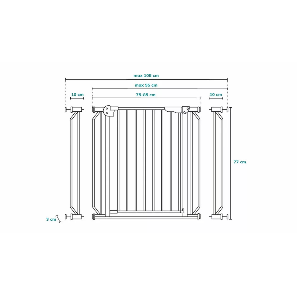 Könnyen rögzíthető biztonsági ajtórács, amivel védhető a baba a nem kívánt területektől.