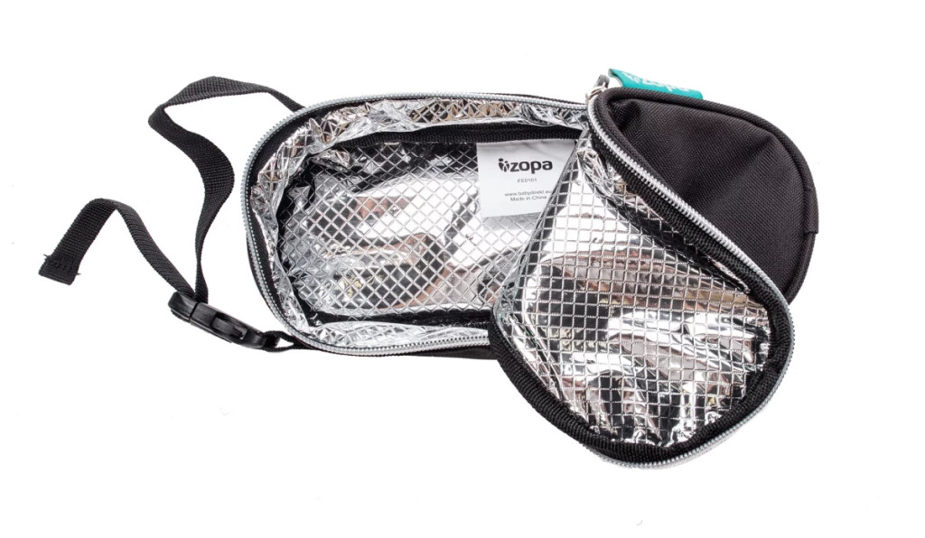 Praktikus, a belsõ fóliának köszönhetõen a palackban lévõ italt melegen tartó tok.