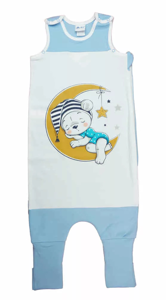 Az ujjatlan kialakítás lehetővé teszi, hogy baba bármilyen ruhában kényelmesen elaludjon benne, miközben a 1 TOG értékű anyag melegen tartja őt.