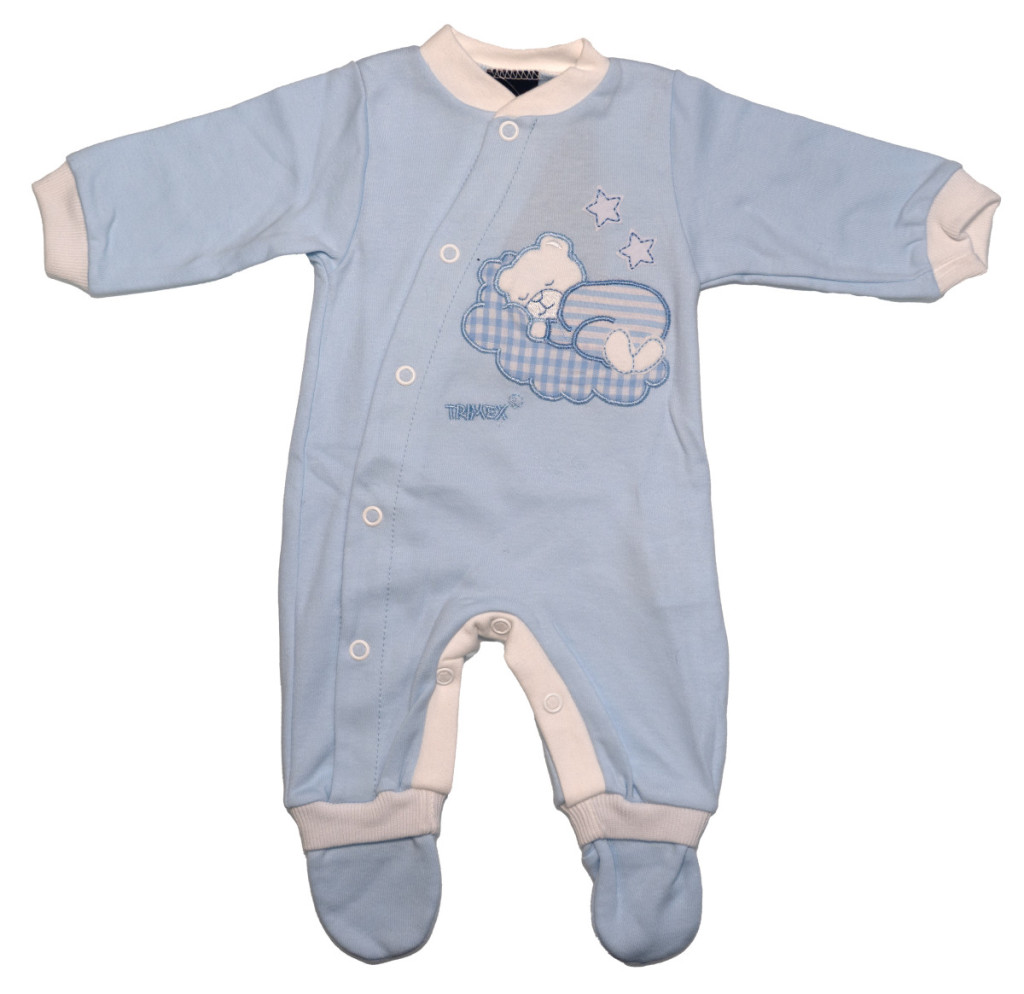 Trimex pamut hosszú ujjú elöl patentos rugdalózó (44) kék felhőn alvó maci