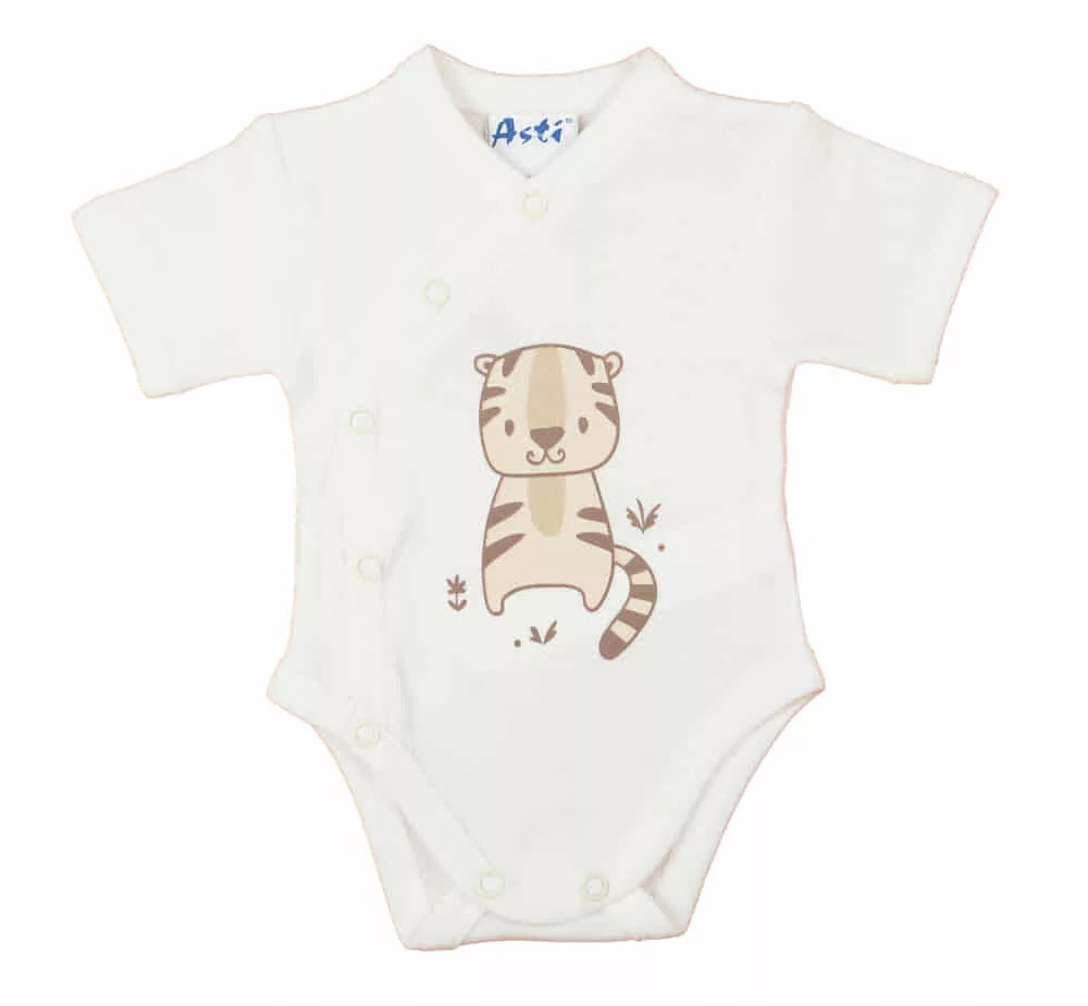 Biopamut elöl patentos rövid ujjú baba kombidresz (68) - tigris