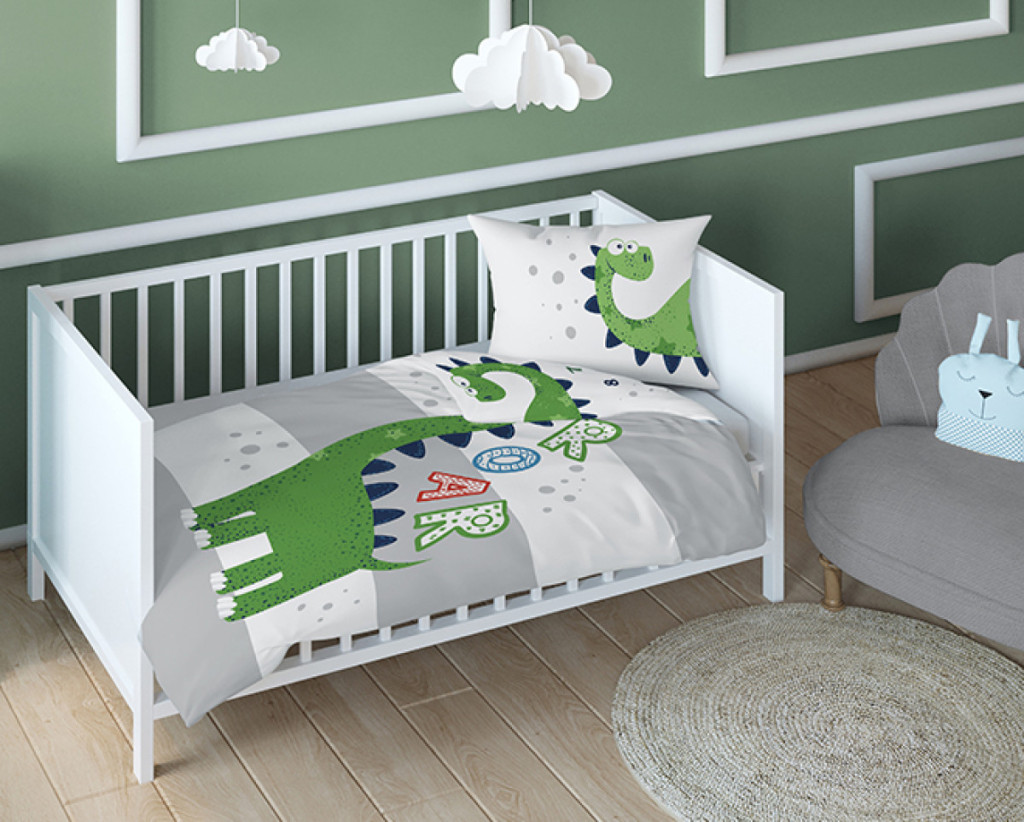 Bambusz ágynemű huzat 90*120 cm - Zöld dinó