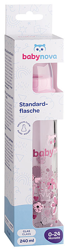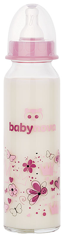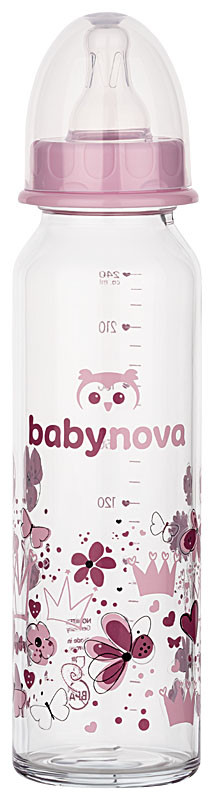 Baby-Nova üveg cumisüveg 240 ml 0-24hó szilikon cumival M-es - rózsaszín