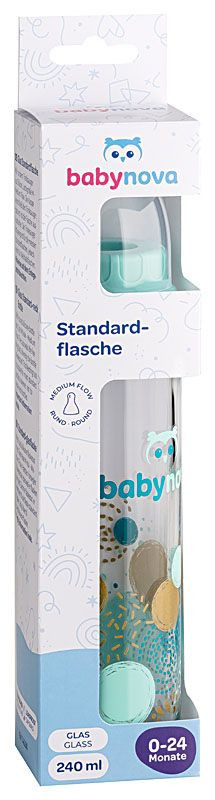 Baby-Nova üveg cumisüveg 240 ml 0-24hó szilikon cumival M-es - kék