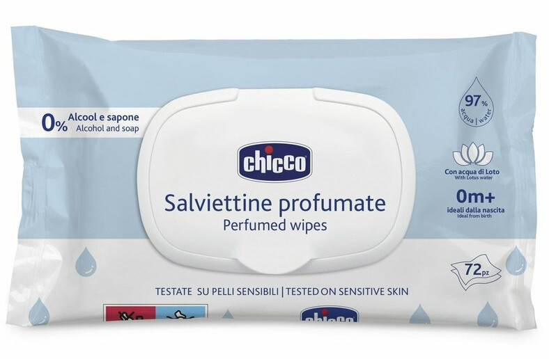 Chicco Lótuszvizes illatos törlőkendő kemény fedéllel 72db érzékeny bőrre 0h+