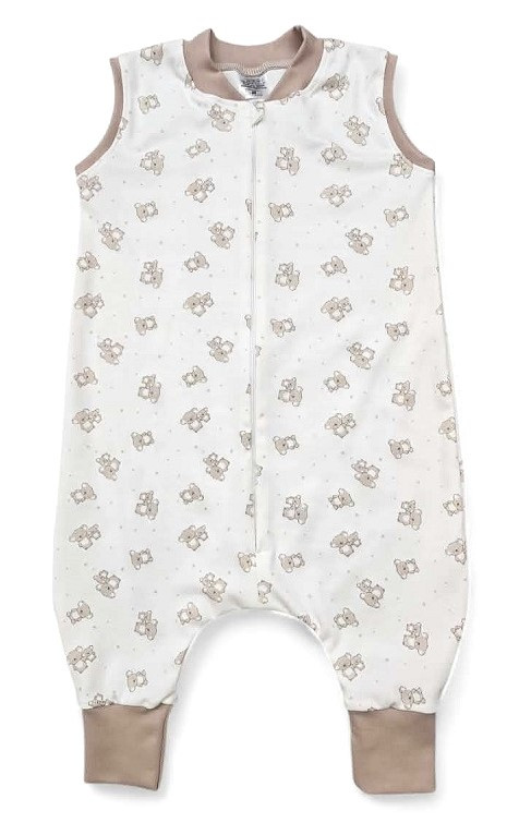 Mintás, elöl cipzáras, ujjatlan pamut tipegő hálózsák.