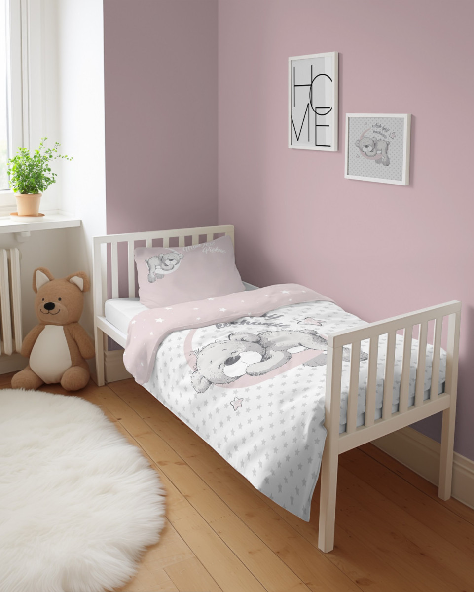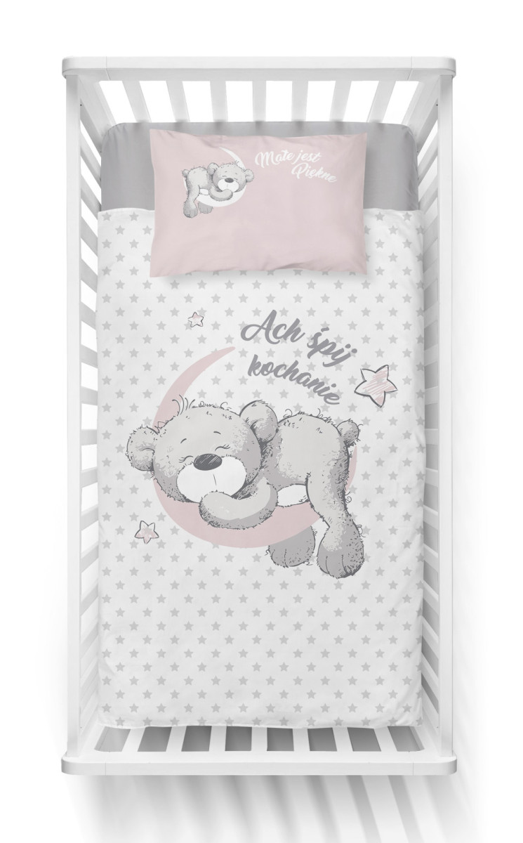 Pamut ágynemű huzat 100*135 cm - Maci a Holdon rózsaszín / fehér