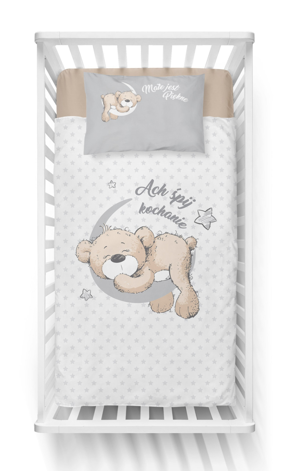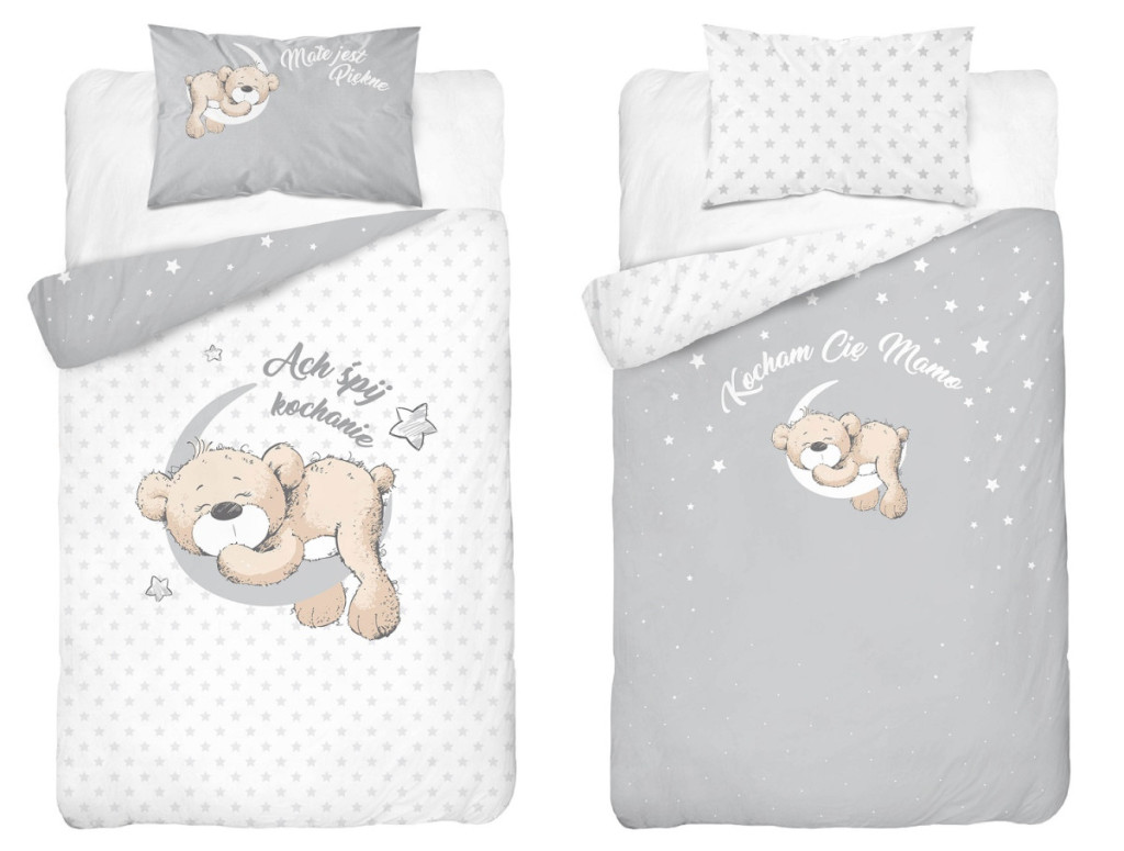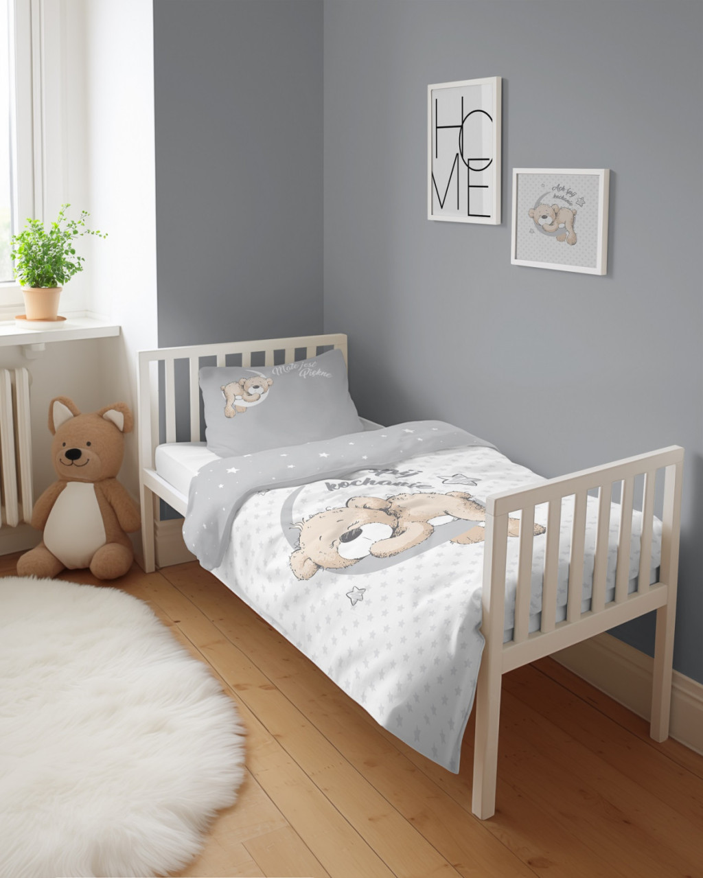 Pamut ágynemű huzat 90*120 cm - Maci a Holdon szürke