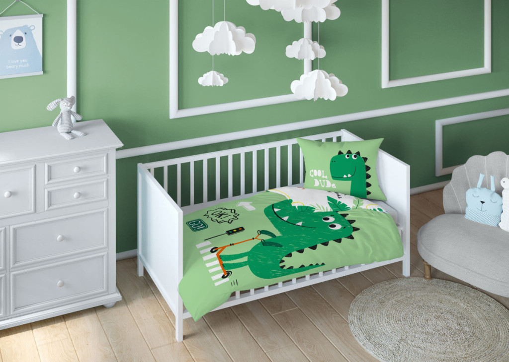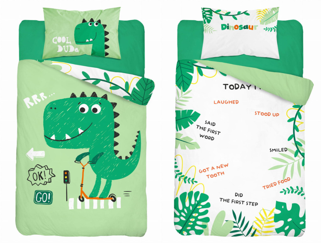 Bambusz ágynemű huzat 100*135 cm - Zöld dinó