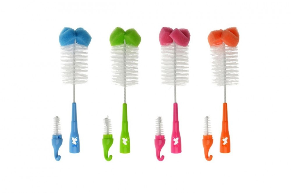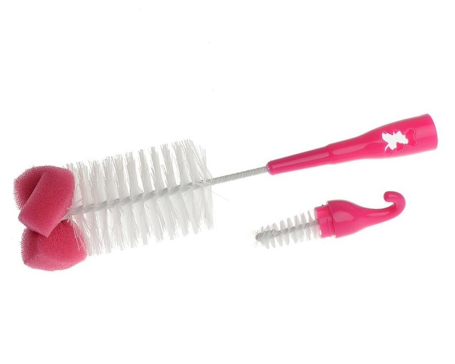 Akuku szivacsos cumisüveg tisztító kefe - rózsaszin