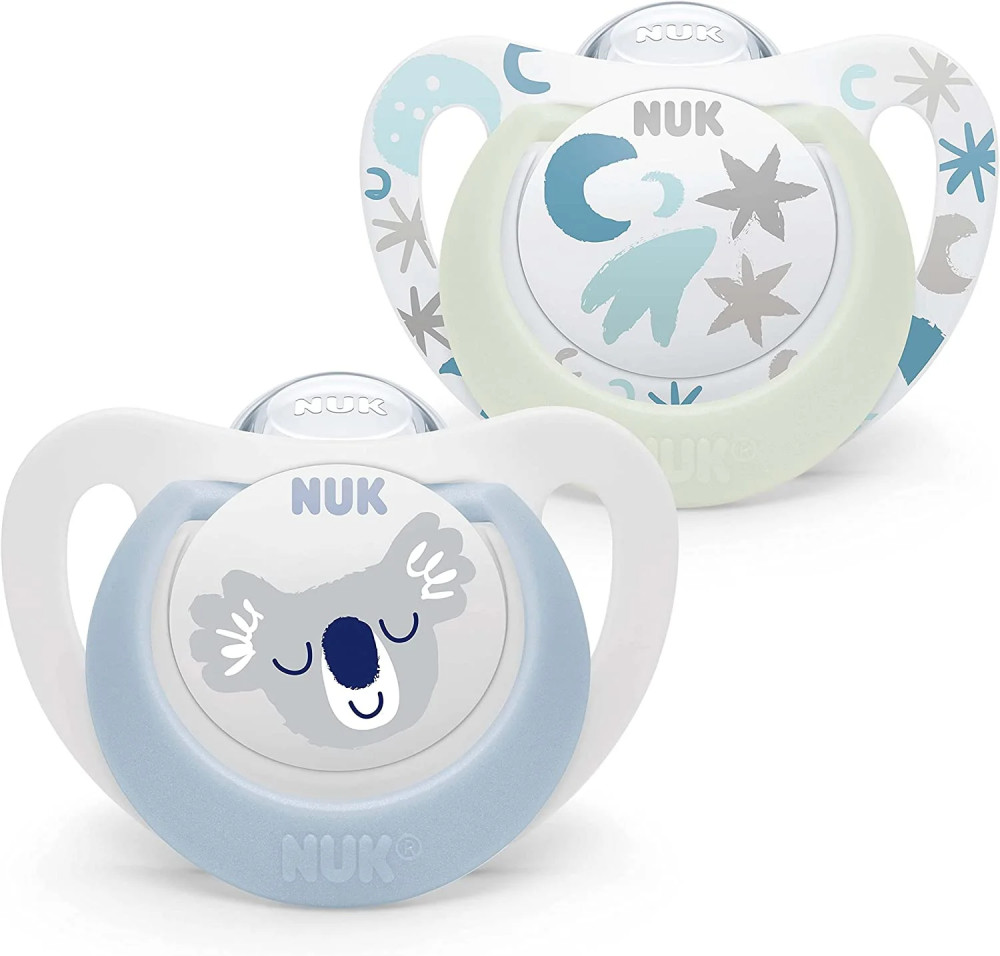 NUK Star Day & Night Világító szilikon játszó és altatócumi (2 db) 0-6 hó lányos