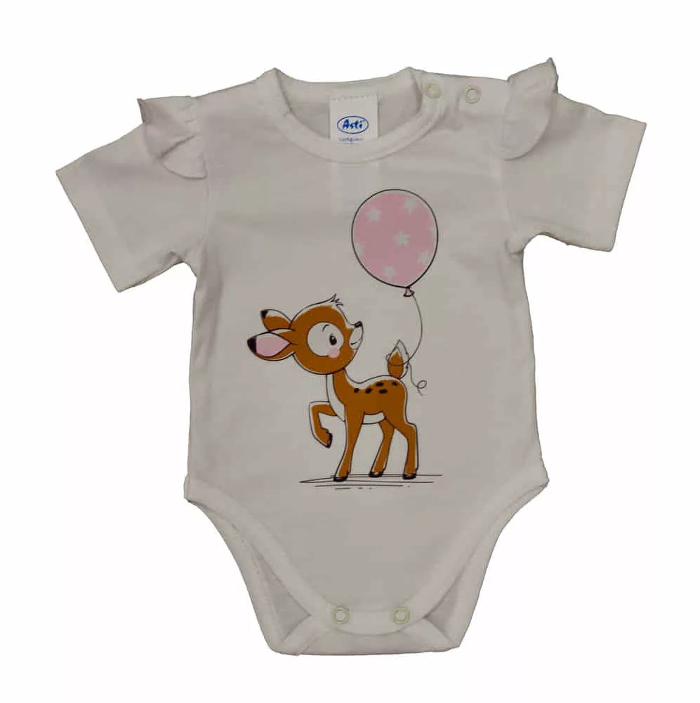 Virágozzon az Ön kis hercegnője ebben a rövid fodros ujjú bababodyban, melyet cuki Őzikés mintával díszítettünk.