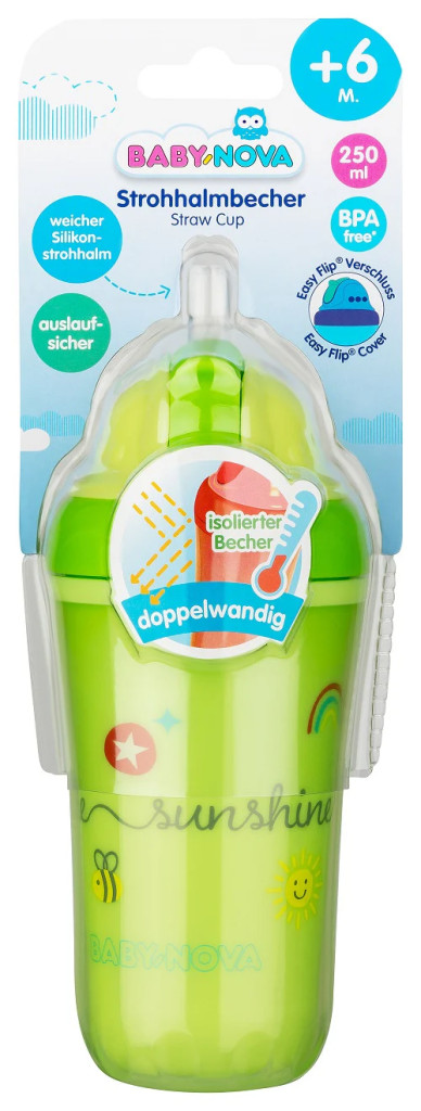 Baby-Nova duplafalú, szívószálas itatópohár 250 ml 6ho+ (zöld)
