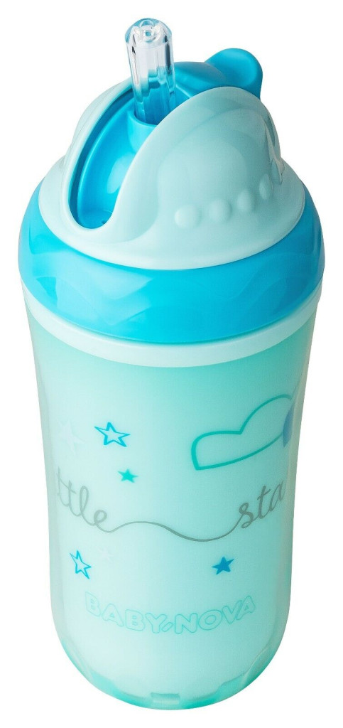 Baby-Nova duplafalú, szívószálas itatópohár 250 ml 6ho+ (kék)
