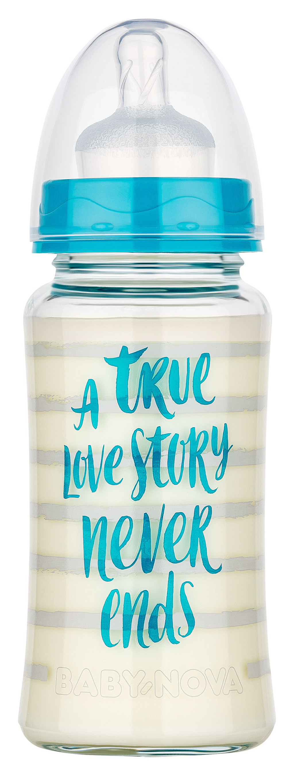 Baby-Nova üveg cumisüveg széles nyakú 230 ml 0-24hó szilikon cumival M-es - kék