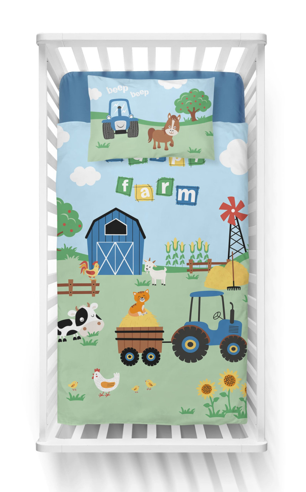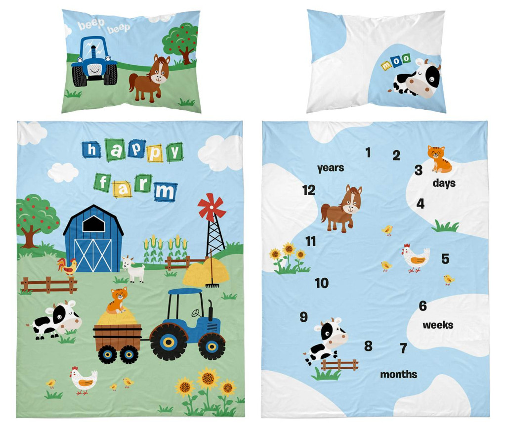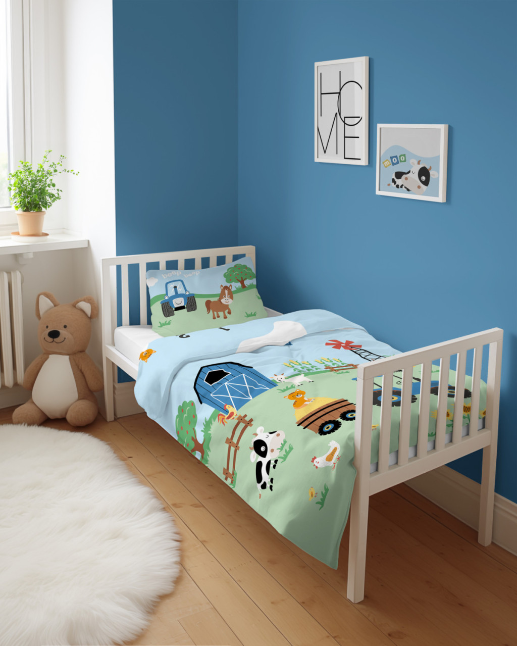 Pamut ágynemű huzat 90*120 cm - Farm kék traktorral