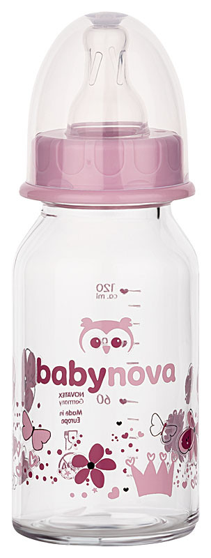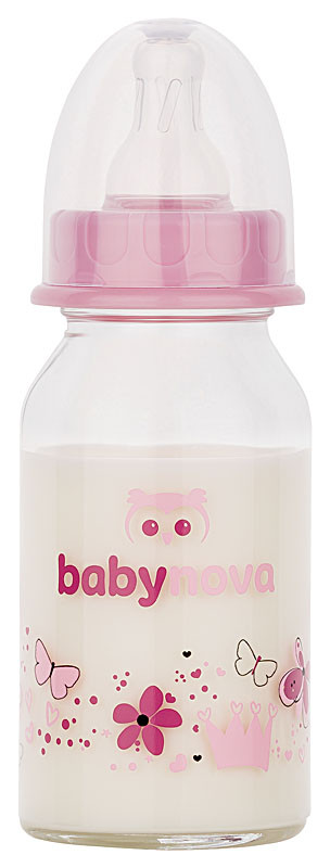 Baby-Nova üveg cumisüveg 120 ml 0-24hó szilikon cumival S-es - rózsaszín