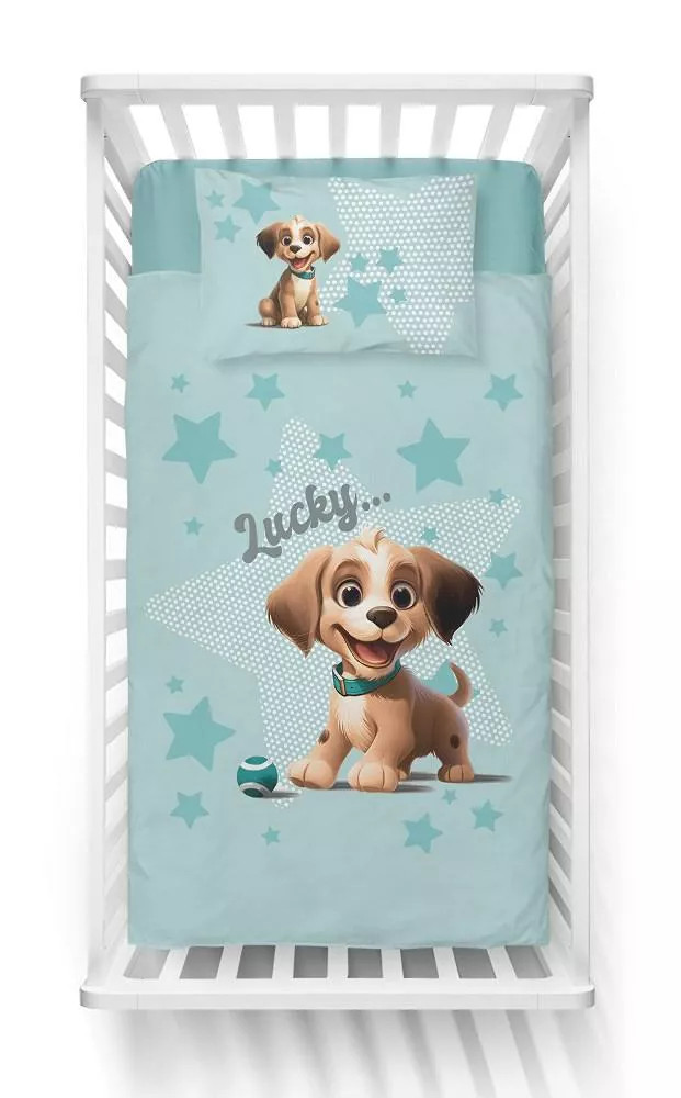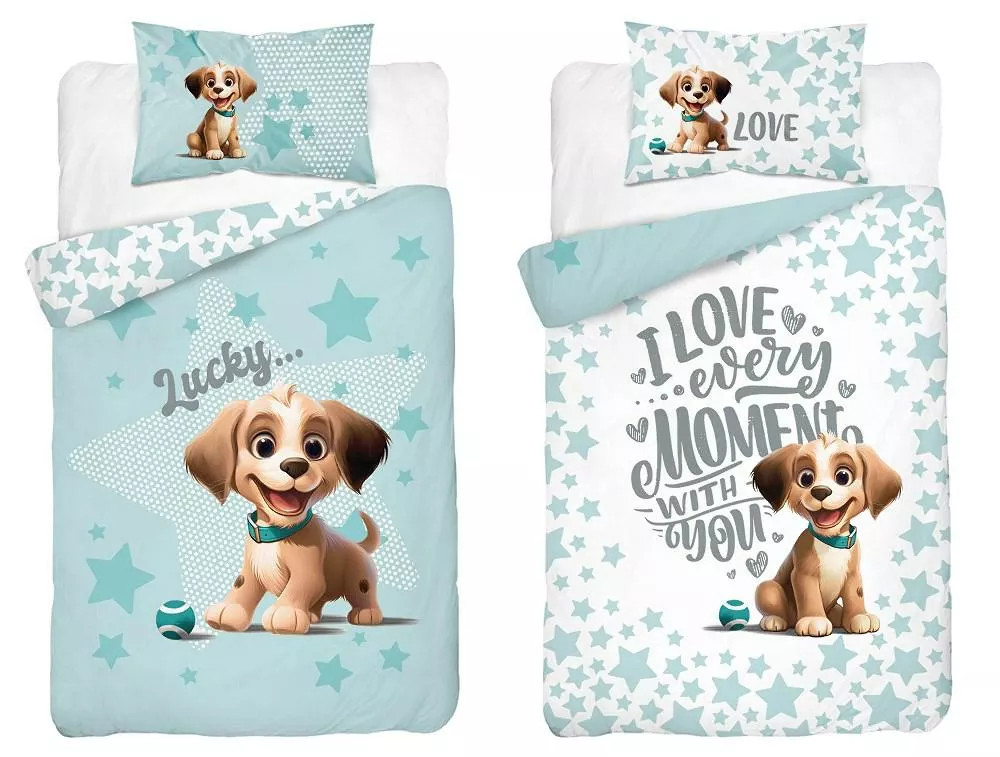 Bambusz ágynemű huzat 100*135 cm - Menta kutyus