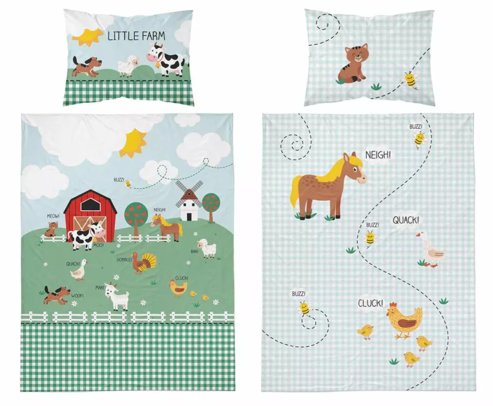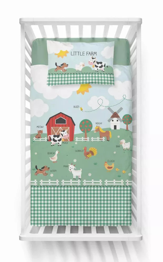 Pamut ágynemű huzat 90*120 cm - Little Farm menta