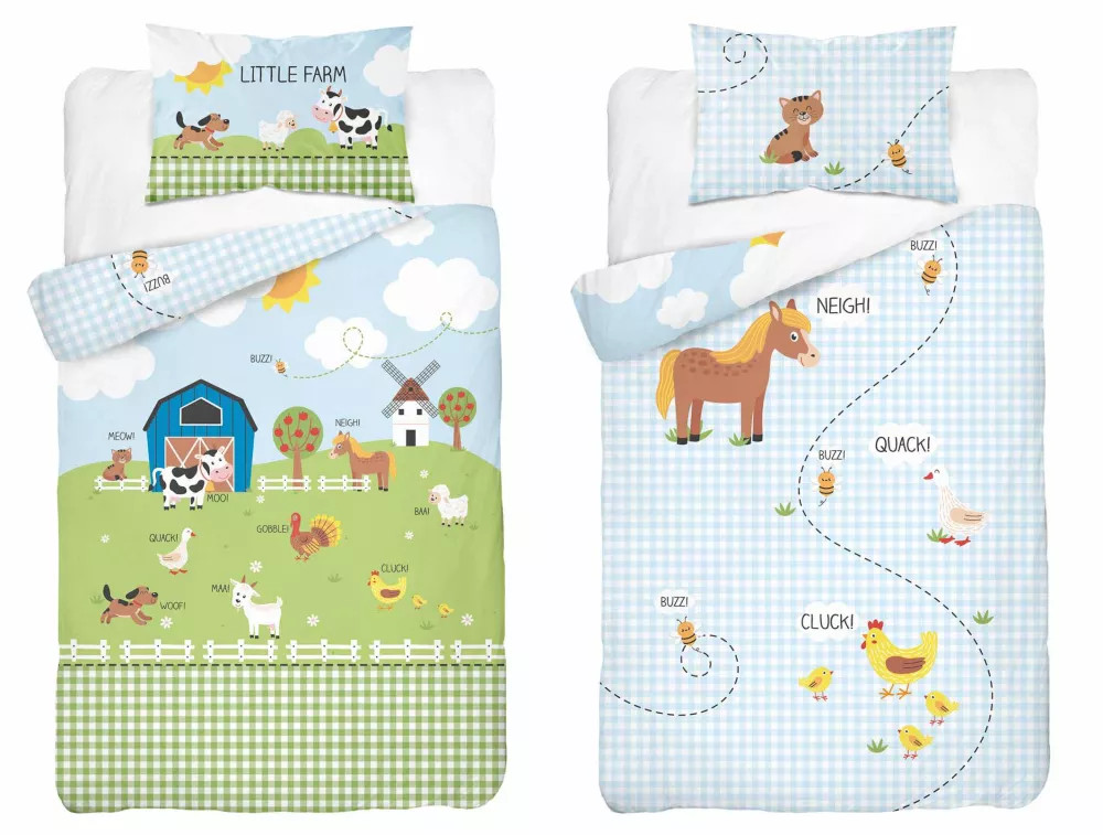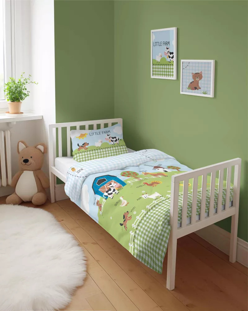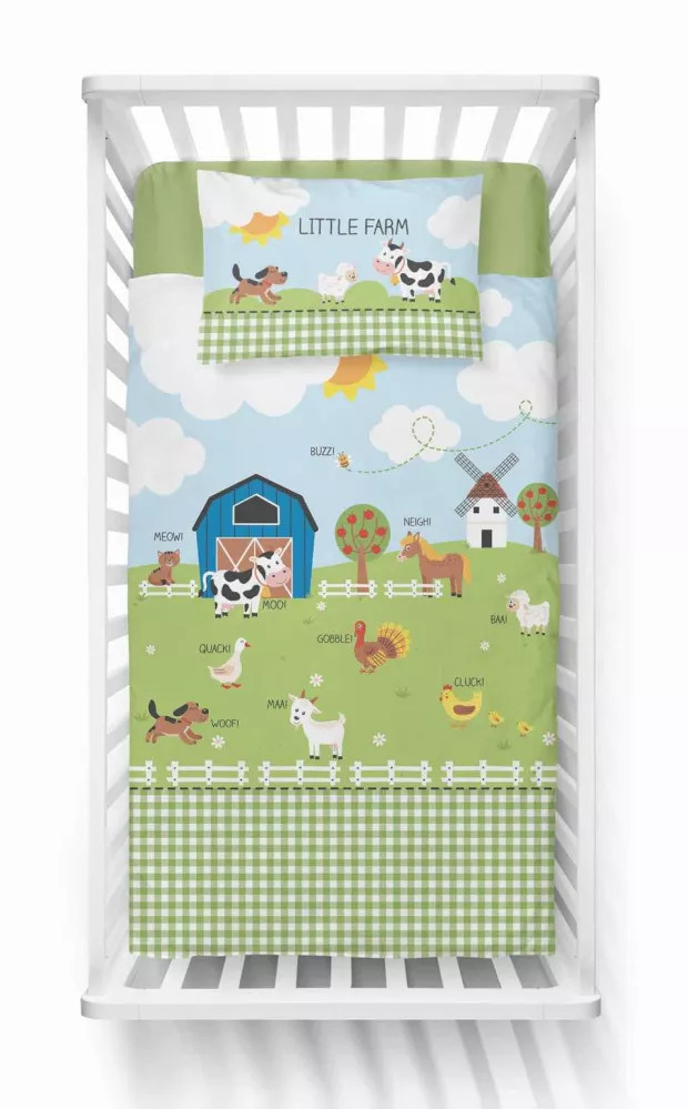 Pamut ágynemű huzat 90*120 cm - Little Farm zöld