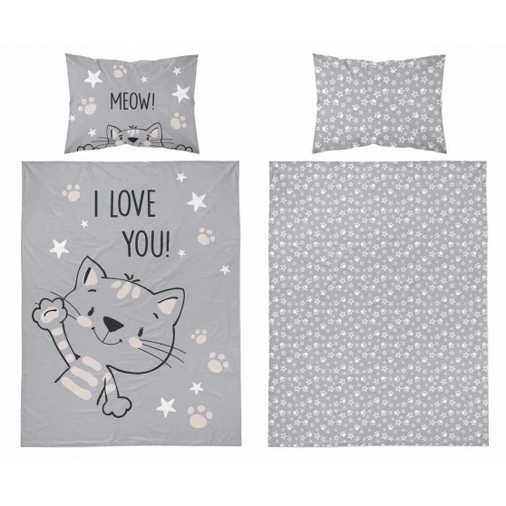 Pamut ágynemű huzat 100*135 cm - Szürke cica