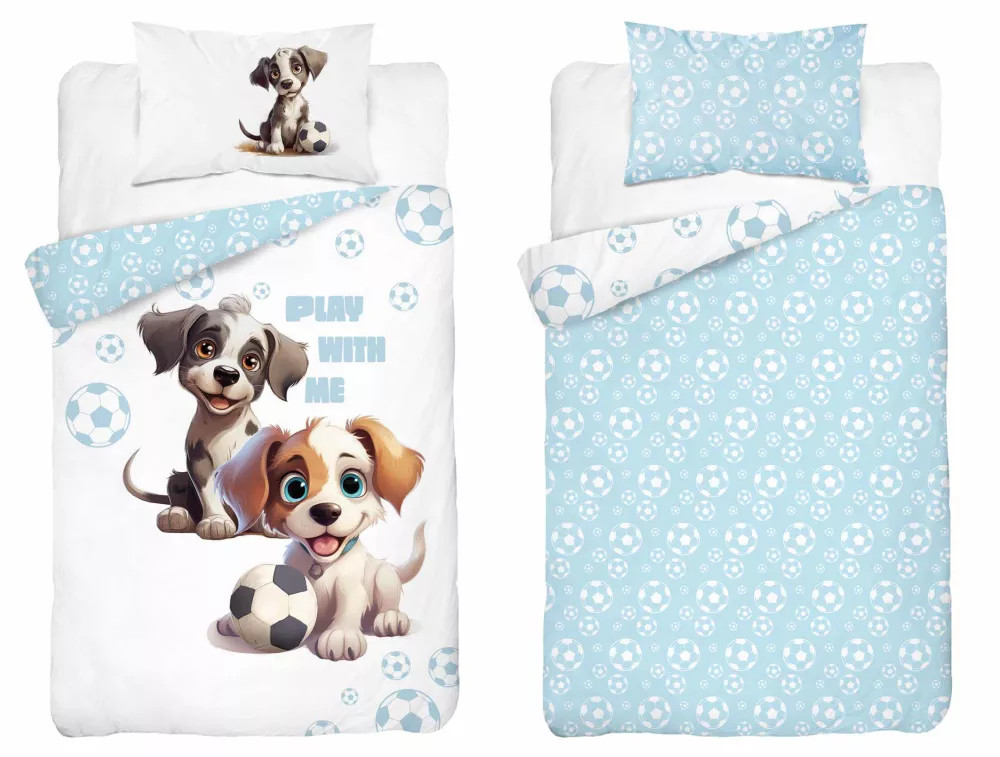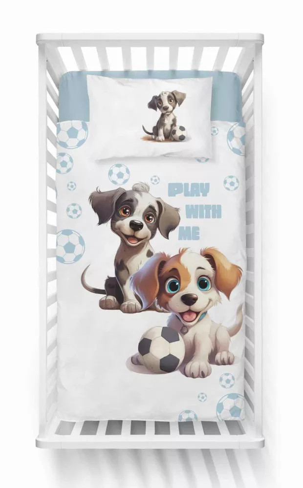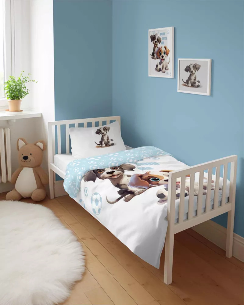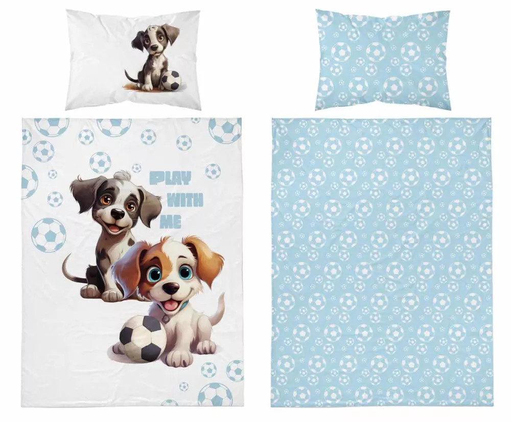 Pamut ágynemű huzat 90*120 cm - Kutyusok fehér/kék