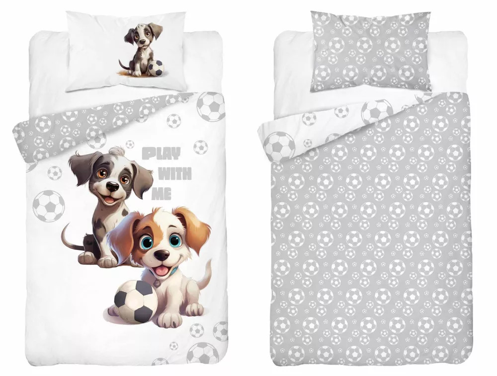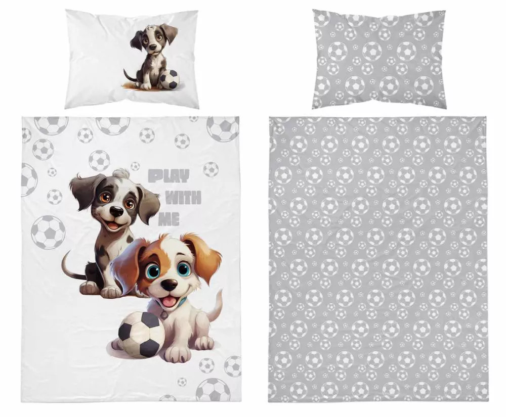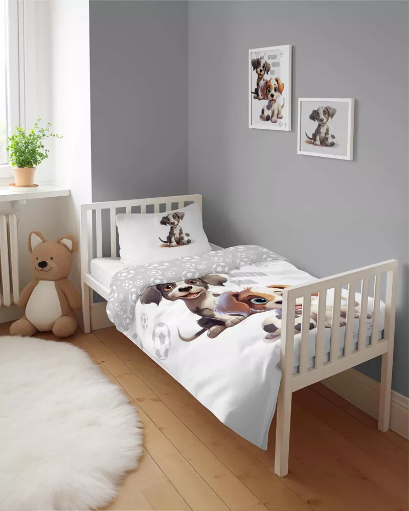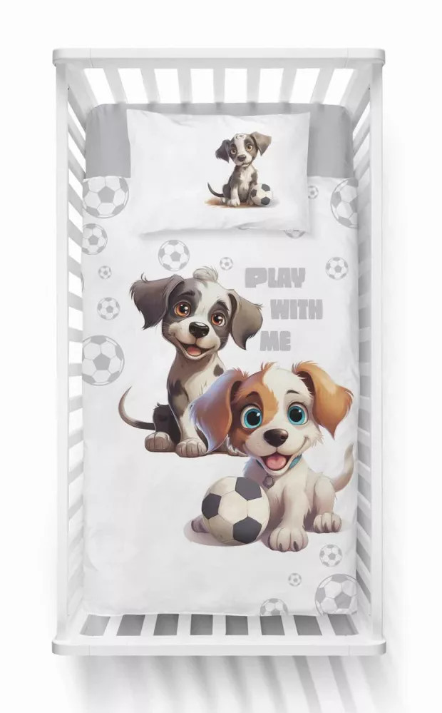 Pamut ágynemű huzat 90*120 cm - Kutyusok fehér/szürke