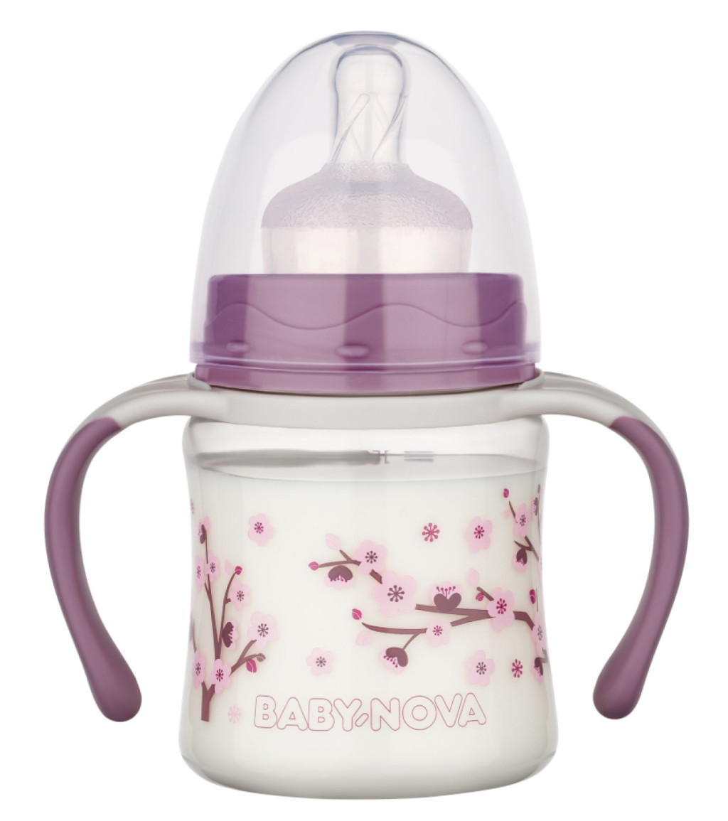 Baby-Nova cumisüveg fogóval széles 150 ml szilikon cumival 0-24 hó - lila