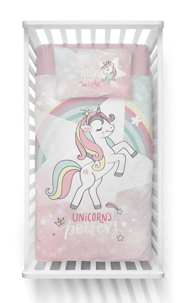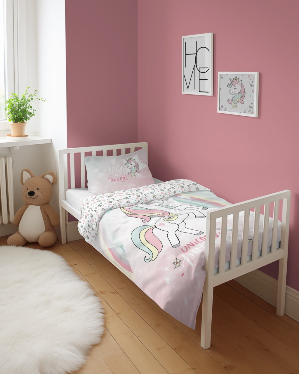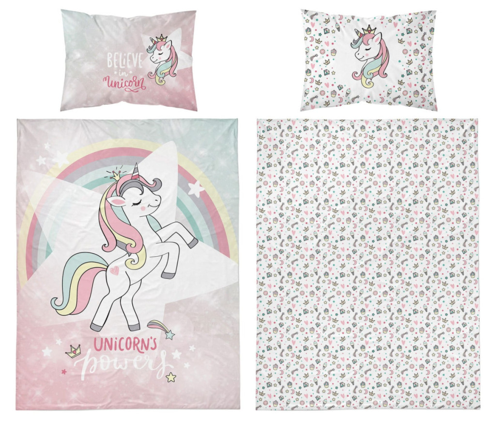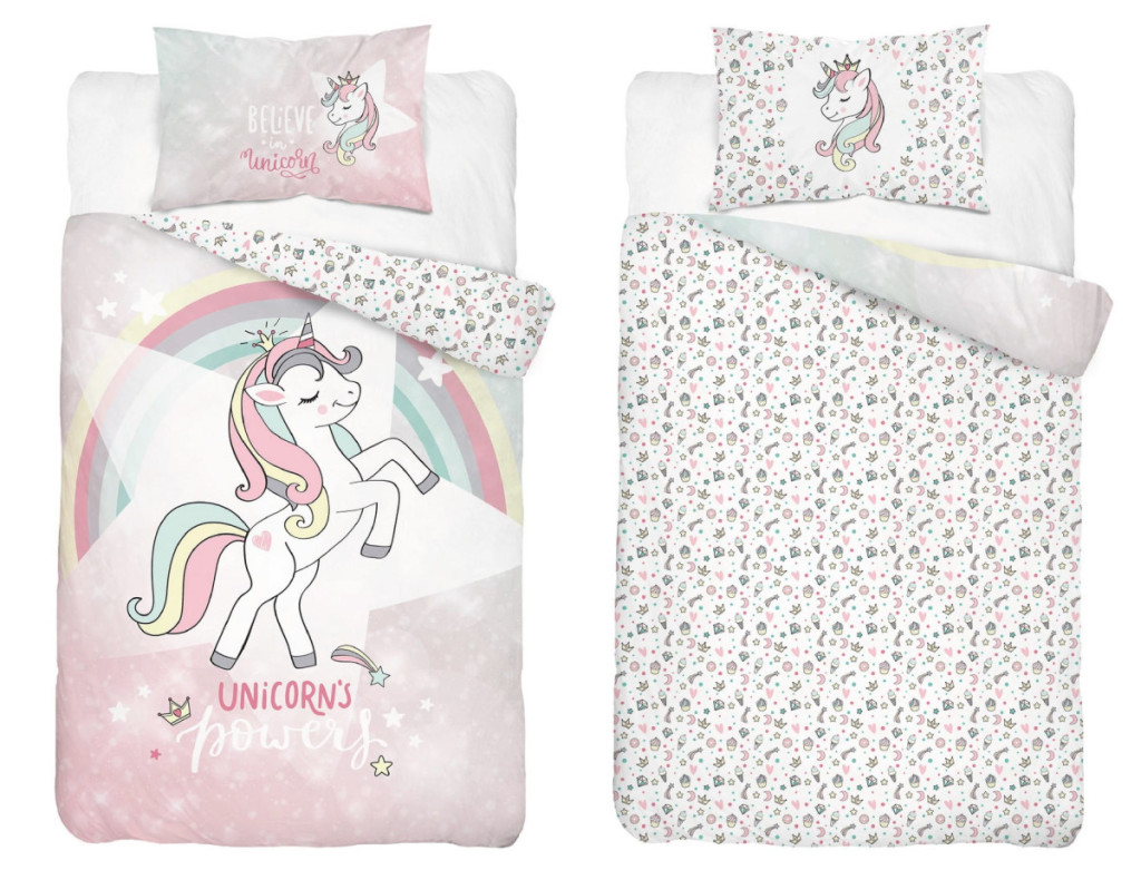 Pamut ágynemű huzat 100*135 cm - Rózsaszín unikornis