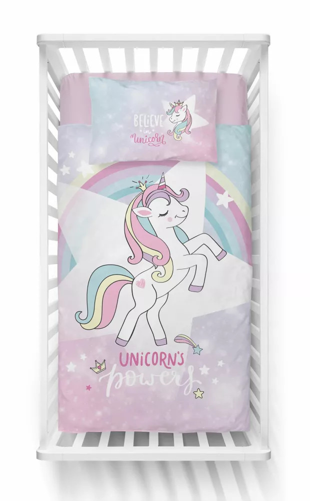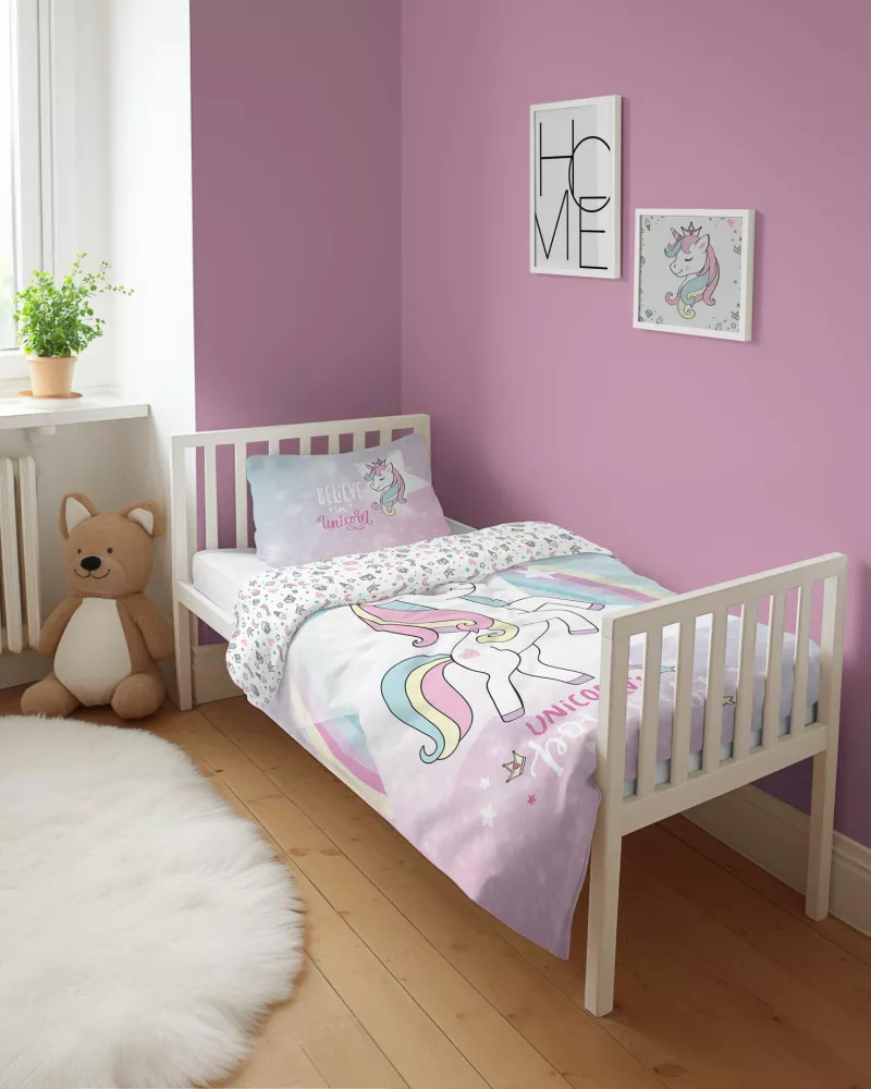 Pamut ágynemű huzat 90*120 cm - Unikornis lila