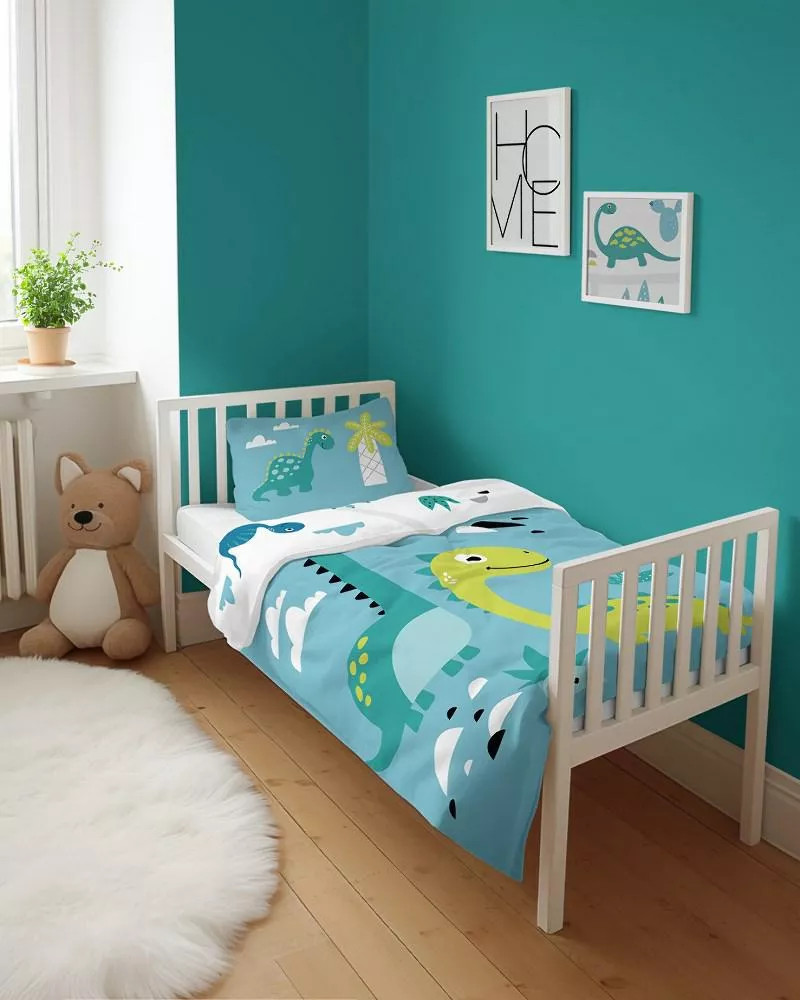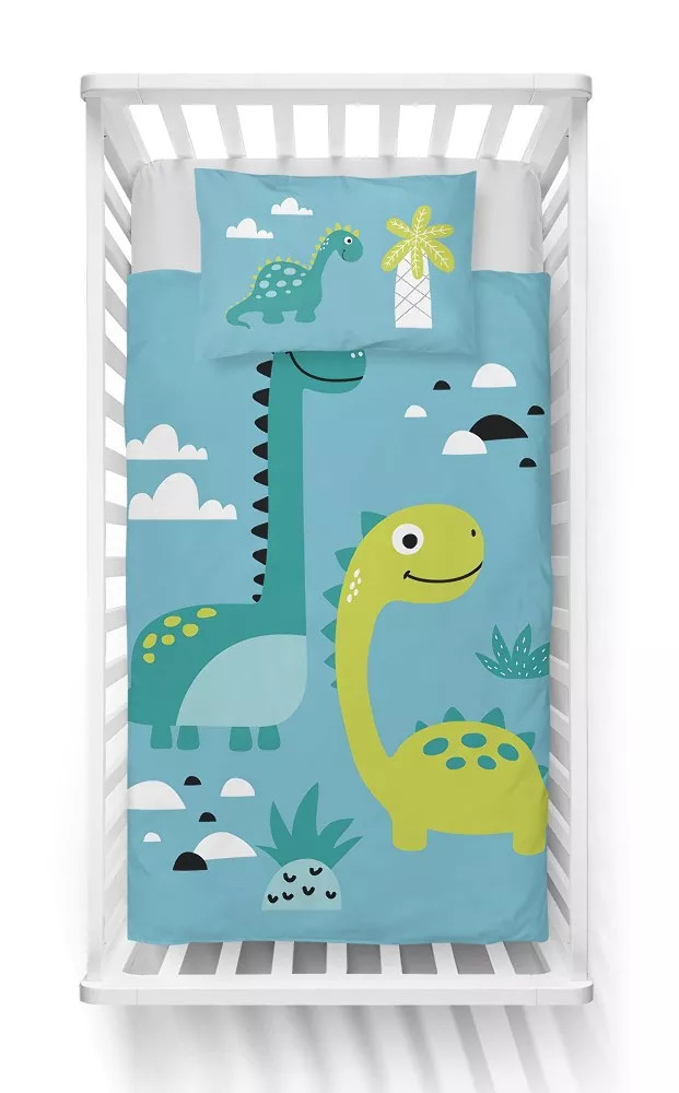Pamut ágynemű huzat 90*120 cm - Kék Dinó