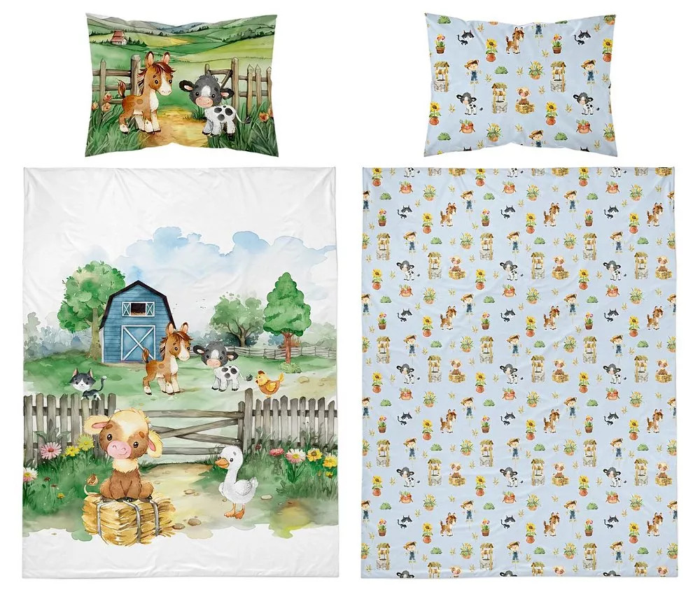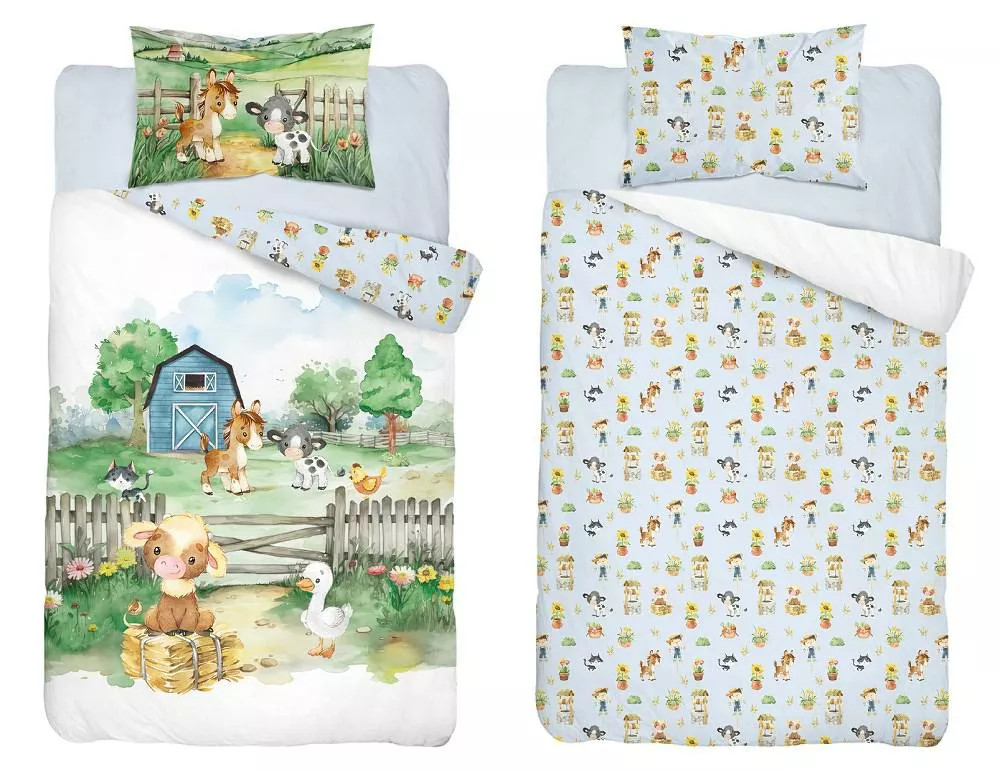 Pamut ágynemű huzat 90*120 cm - Farm kék