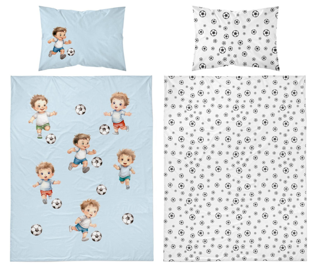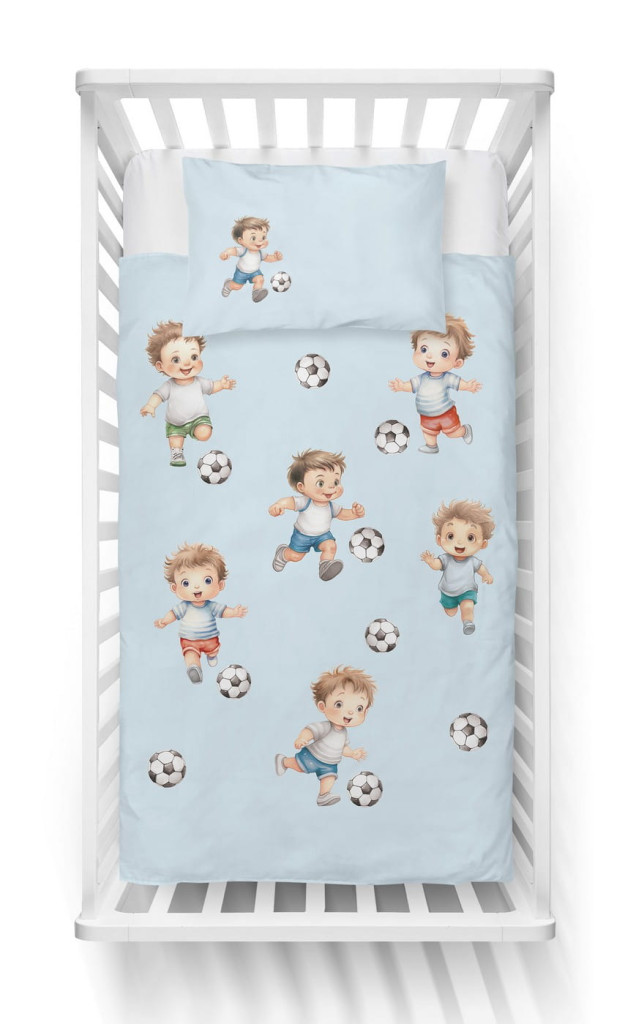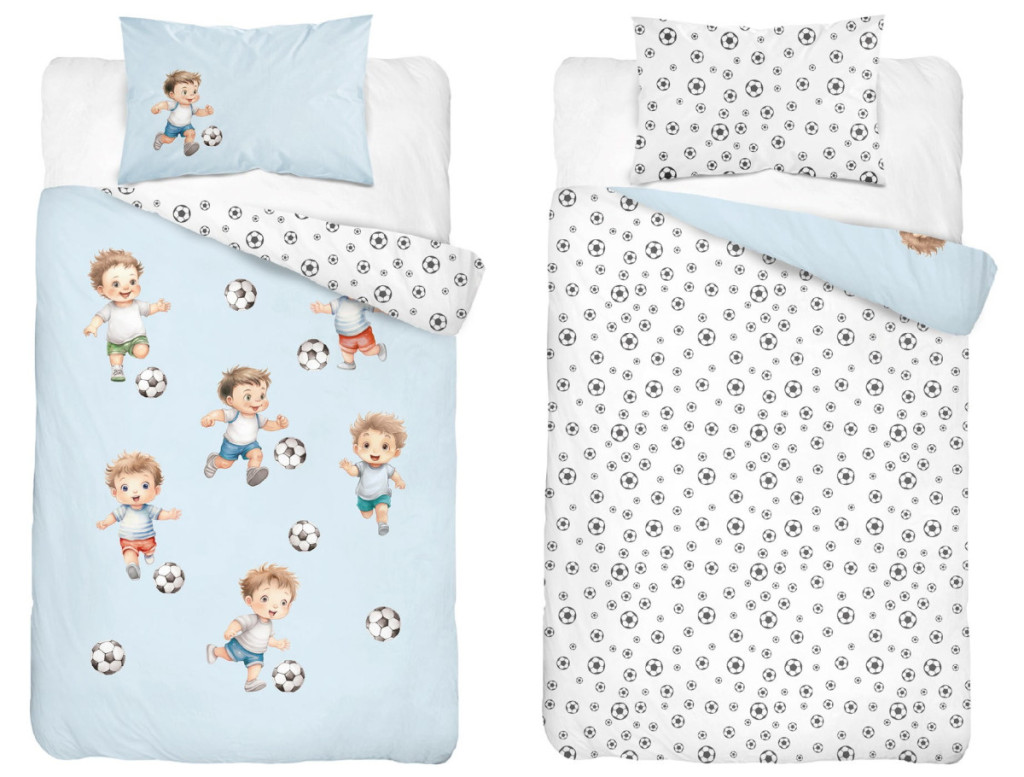 Pamut ágynemű huzat 90*120 cm - Kis focisták kék