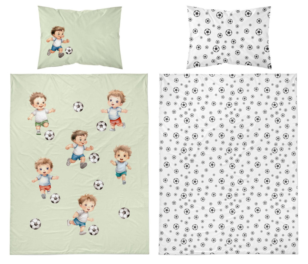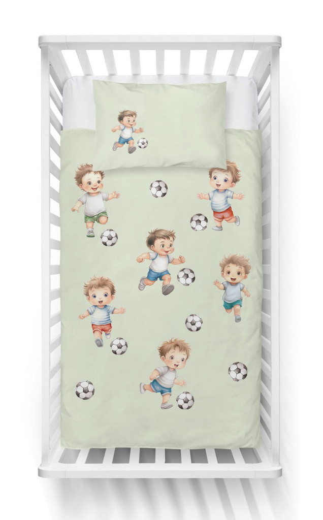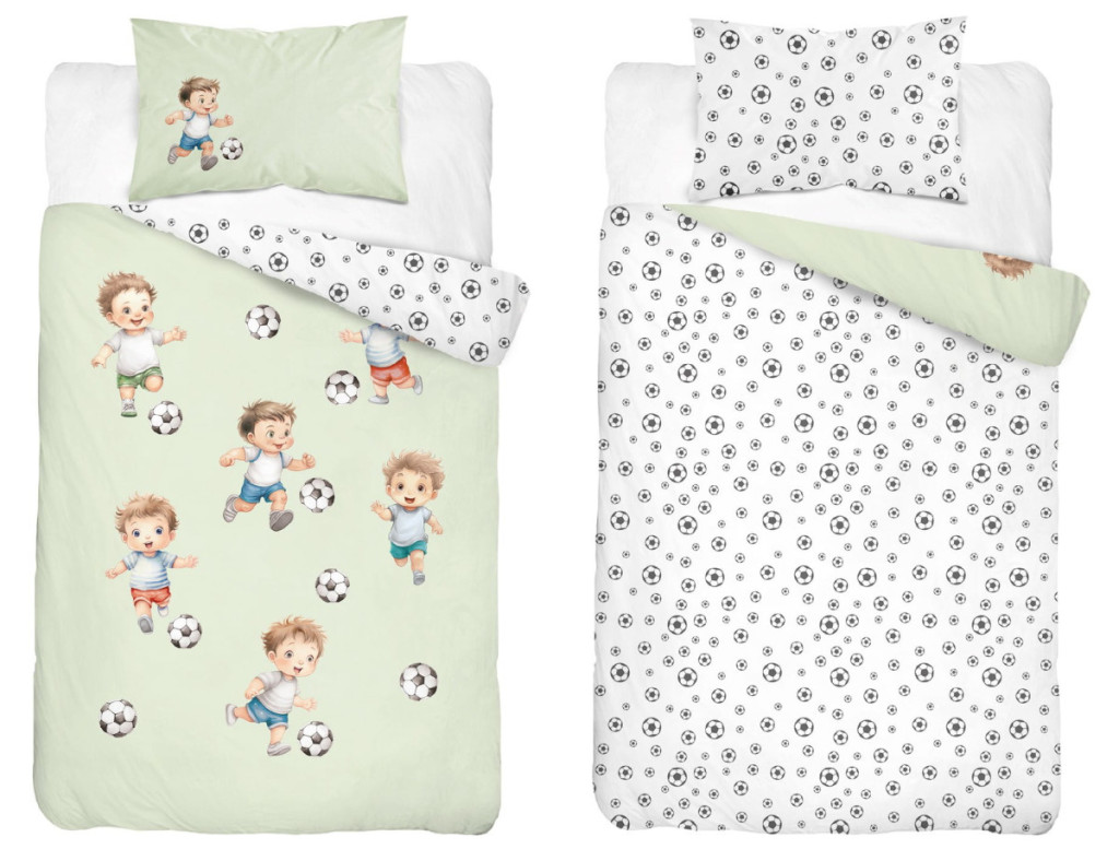 Pamut ágynemű huzat 90*120 cm - Kis focisták zöld