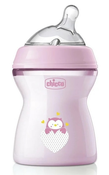Chicco NaturalFeeling 250 ml cumisüveg közepes folyású 2 hó+ rózsaszín bagoly