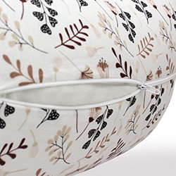 A huzat leszedhető. Az évszaknak és az igényeknek megfelelően többféle kelméből készülhet. Két végébe zsinórt varrtunk, így a párna végeinél összeköthető.