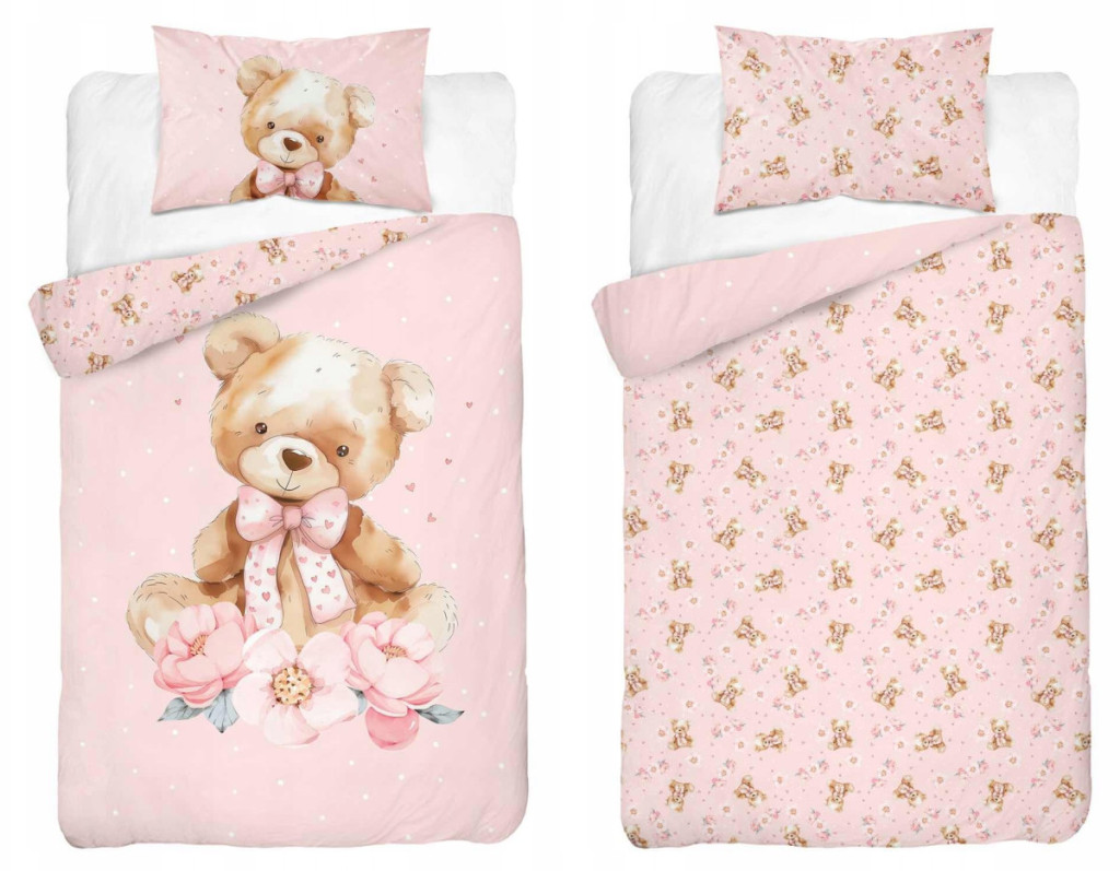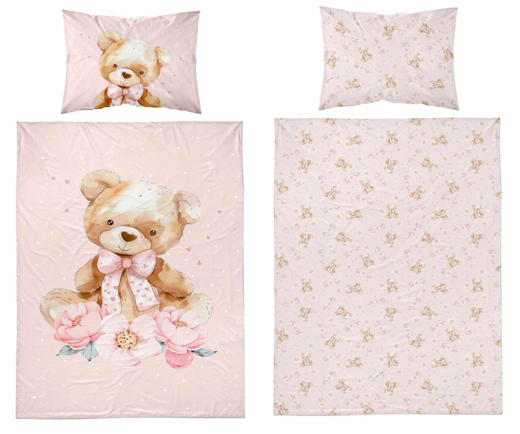 Pamut ágynemű huzat 90*120 cm - Maci púderrózsaszín
