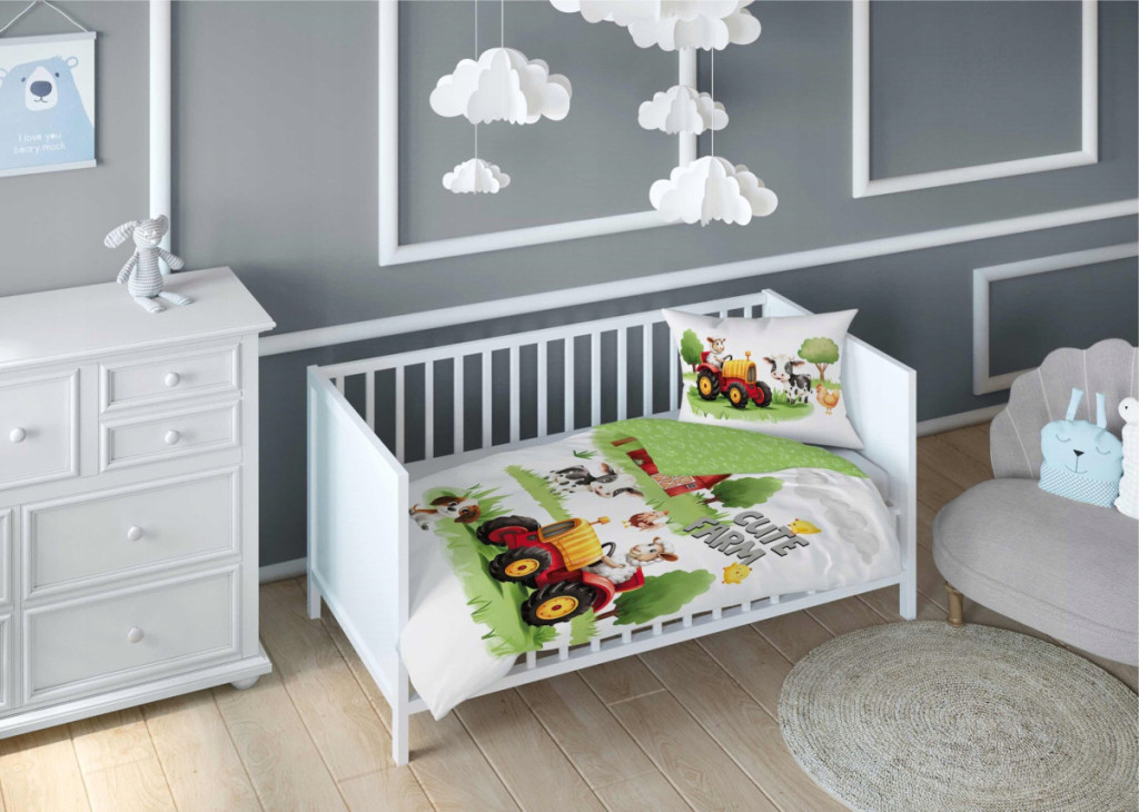 Pamut ágynemű huzat 90*120 cm - Cute Farm piros traktorral